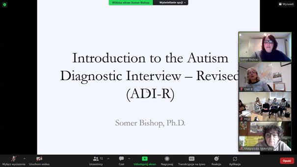 Dzięki dostępowi do najnowszych technologii szkolenie przeprowadzone zostało zarówno na platformie Zoom z USA oraz w Centrum Symulacji Medycznej Uniwersytetu Rzeszowskiego. Pozwoliło to na połączenie się z naszym szkoleniowcem, dr Somer Bishop z Department of Psychiatry, University of California, San Francisco, STAR Center for ASD & NDDS, UCSF, USA. Dr Bishop jest jednocześnie współautorem narzędzia ADOS-2, który wraz z wywiadem ADI-R stanowią tzw. „złoty standard diagnozy autyzmu” na świecie. Szkolenie spotkało się z ogromnym zainteresowaniem i dało możliwość uczestnictwa 100 osobom przy ponad dwukrotnie większej ilości zgłoszeń całej Polski. Szkolenie ADI-R odbyło się dzięki wieloletniej współpracy dr Somer Bishop i dr n. med. Agnieszki Rynkiewicz w ramach kolejnego projektu Kolegium Nauk Medycznych, Uniwersytetu Rzeszowskiego wspieranego przez Polsko-Amerykańską Komisję Fulbrighta.
