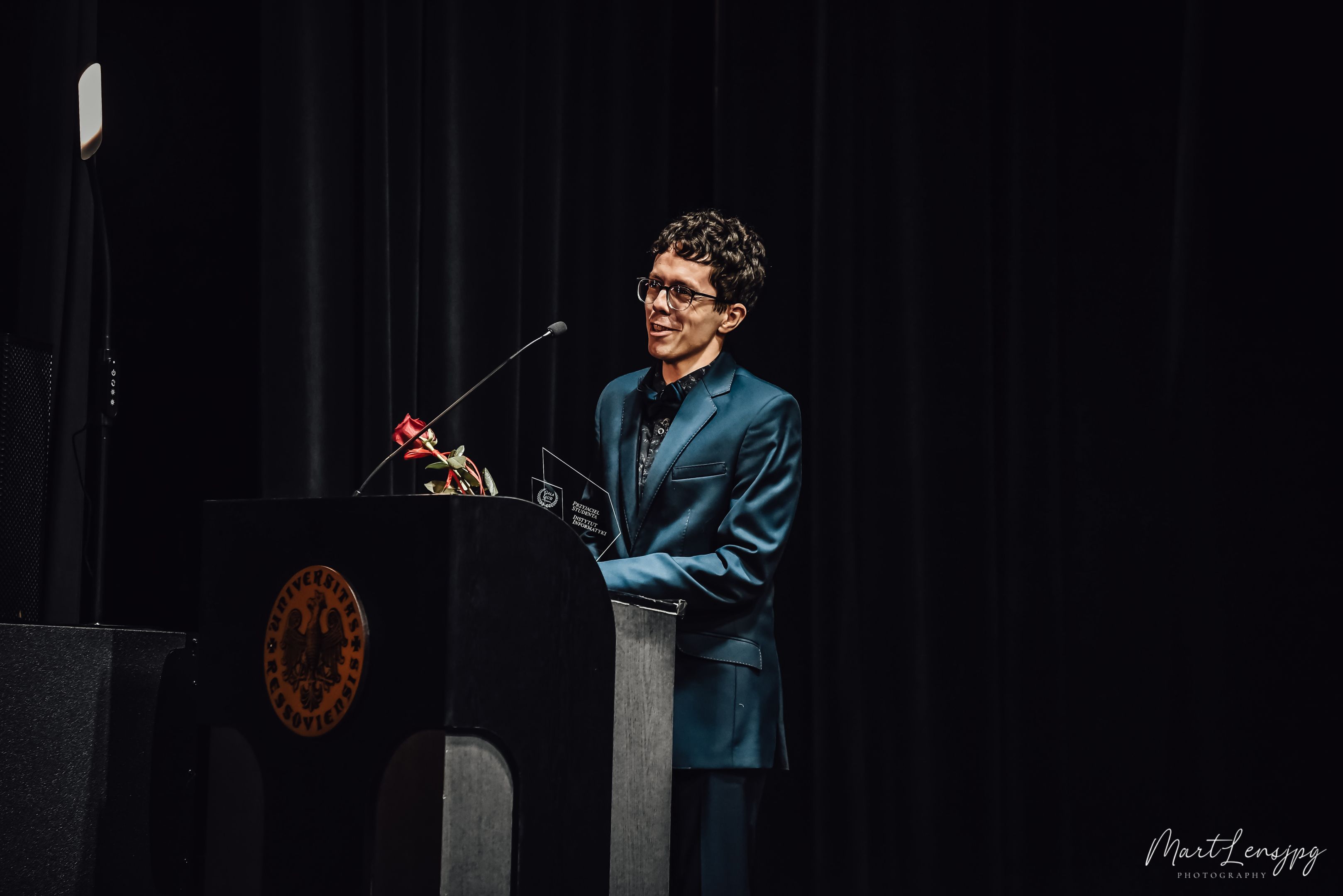 Dzisiejszy wieczór jest wyjątkową okazją, by wspólnie celebrować całoroczne zaangażowanie, pasje i wyjątkowe osiągnięcia - mówił Bartosz Gabrychowicz Przewodniczący Samorządu Studentów.