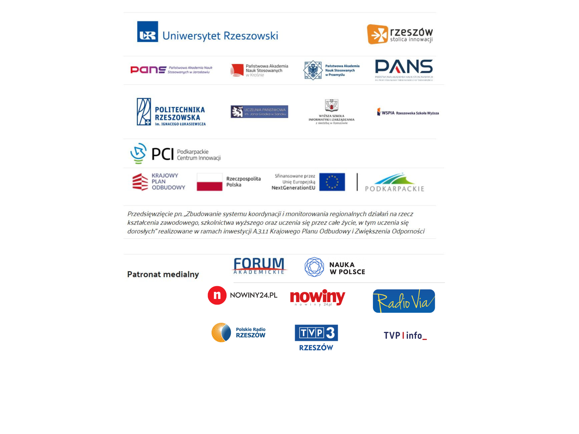 Współorganizatorem wydarzenia był Uniwersytet Rzeszowski, a partnerami Miasto Rzeszów, Wojewódzki Urząd Pracy w Rzeszowie (w ramach przedsięwzięcia pn. „Zbudowanie systemu koordynacji i monitorowania regionalnych działań na rzecz kształcenia zawodowego, szkolnictwa wyższego oraz uczenia się przez całe życie, w tym uczenia się dorosłych” realizowane w ramach inwestycji A.3.1.1 Krajowego Planu Odbudowy i Zwiększenia Odporności), Podkarpackie Centrum Innowacji.
