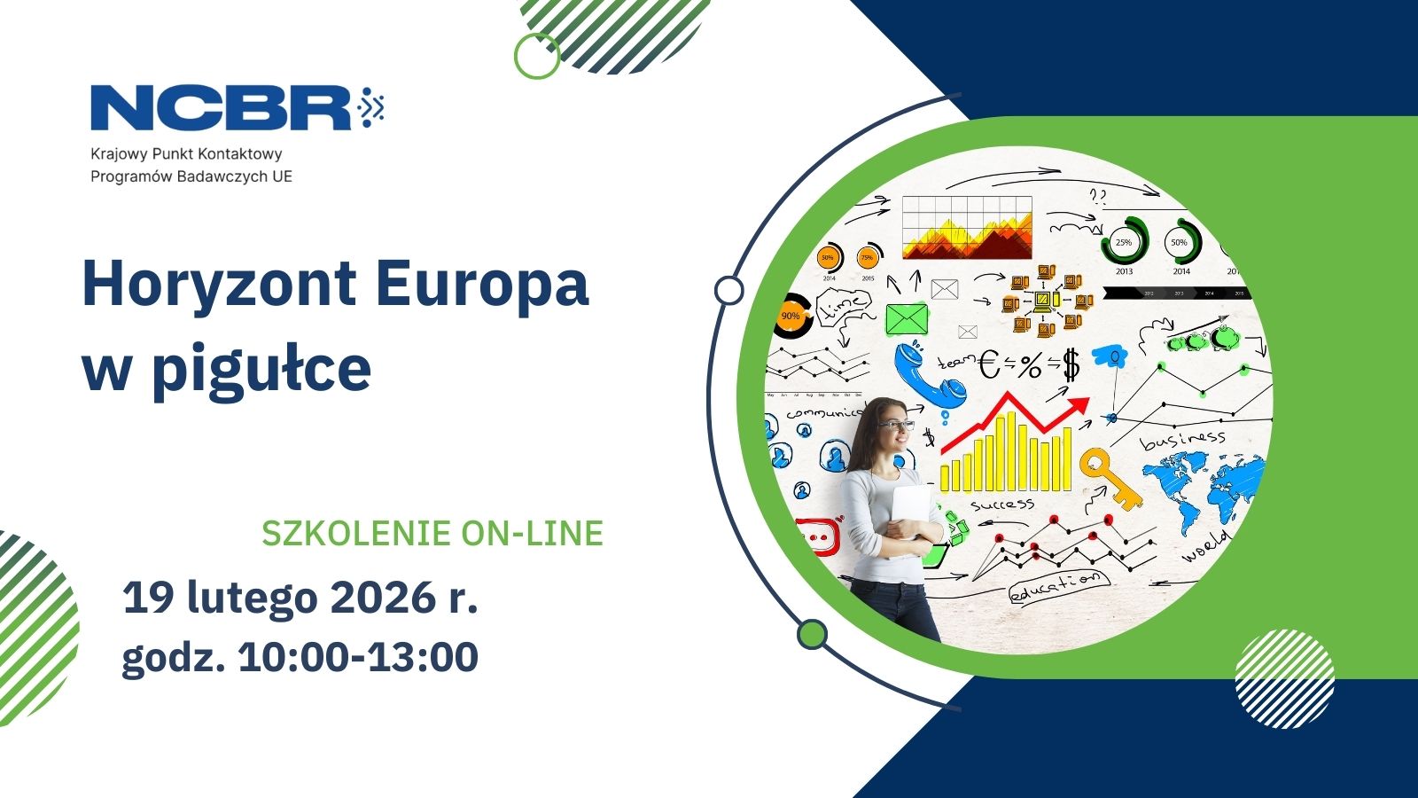 Szkolenie On-line Horyzont Europa w pigułceKrajowy Punkt Kontaktowy Programów Badawczych UE zaprasza na kolejne spotkanie wszystkich , którzy stawiają pierwsze kroki w Horyzoncie Europa.Termin: 19 lutego 2026 roku w godzinach 10:00-13:00.Podczas spotkania powiemy o strukturze Programu Ramowego Horyzont Europa(HE) i zasadach uczestnictwa, jak również poznają Państwo granty jakie proponuje ten program dla jednostek naukowych i przemysłowych. Dowiedzą się Państwo co oznaczają skrótowce ERC, MSCA, EIC, powiemy o typach projektów występujących w HE. Szkolenie poprowadzi Joanna Niedziałek Ekspert NCBR/DKPK. |