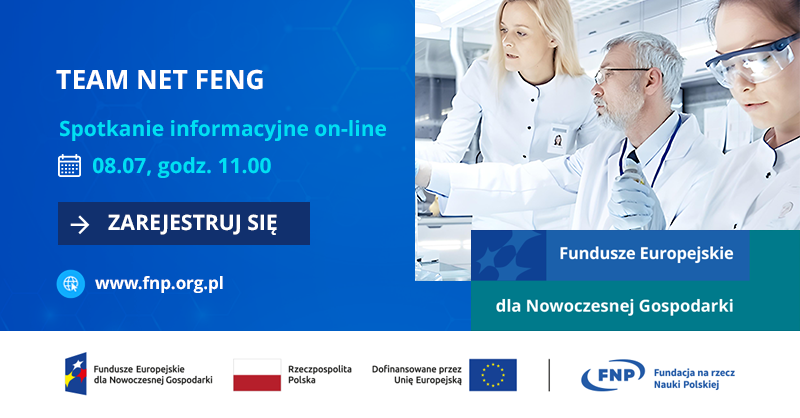 Fundacja na rzecz Nauki Polskiej ogłasza informację o planowanym naborze wniosków w działaniu TEAM NET FENG finansowanym z programu Fundusze Europejskie dla Nowoczesnej Gospodarki (FENG). Działanie TEAM NET dotyczy współpracy zespołów badawczych w organizacjach badawczych w Polsce, które poprowadzą działalność naukową w tematyce Zdrowia, Środowiska i Przemysłu 4.0 zdefiniowanych jako obszary o strategicznym znaczeniu gospodarczym i odznaczające się wybitnym potencjałem naukowym w Polsce. Wysokość finansowania