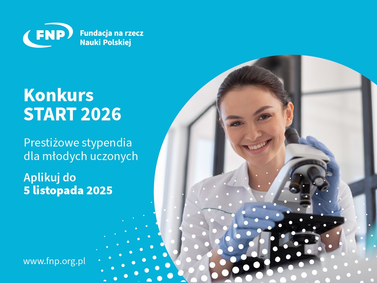 Stypendia #START FNP – nabór wniosków do 5 listopada! Fundacja na rzecz Nauki Polskiej prowadzi nabór wniosków do prestiżowego programu #START 2026 – jednego z najważniejszych w Polsce konkursów stypendialnych dla osób rozpoczynających karierę naukową. ➡️ wnioski można składać do 5 listopada 2025 r. ➡️ stypendium przyznawane jest na okres 12 miesięcy, a jego wysokość to ok. 30 000 zł ➡️ mogą się o niego ubiegać badaczki i badacze do 30. roku życia, prowadzący działalność naukową w Polsce. Zachęcamy doktorantów oraz młodych pracowników naukowych uczelni do udziału w programie. 👉 Szczegóły, regulamin i formularze aplikacyjne dostępne są na stronie programu: https://fnp.org.pl/component/fnp_programs/program/start |