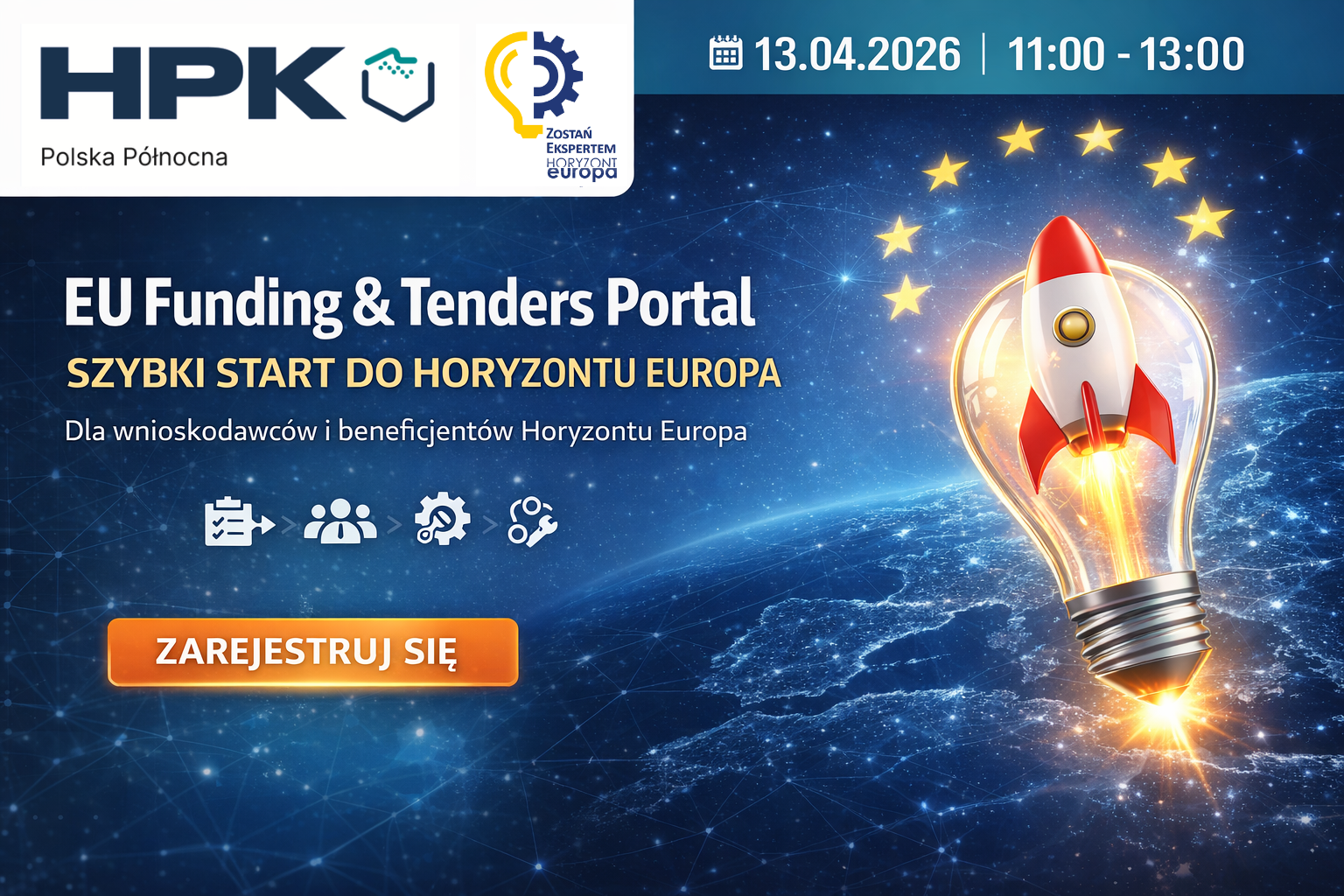 Szkolenie - Funding & Tenders Portal – szybki start do Horyzontu Europa 13 kwietnia 2026, w godz. 11.00-13.00, online HPK Polska Północna zaprasza na szkolenie dotyczące portalu Komisji Europejskiej EU Funding & Tenders Portal – głównego narzędzia do składania wniosków projektowych, podpisywania umów grantowych oraz zarządzania projektami w programie Horyzont Europa. Podczas spotkania uczestnicy poznają najważniejsze funkcjonalności portalu oraz kluczowe etapy związane z przygotowaniem i realizacją projektu, ze szczególnym uwzględnieniem procesu podpisywania umowy grantowej oraz zasad nadawania uprawnień do obsługi dokumentów prawnych i finansowych. Zakres tematyczny szkolenia obejmuje: