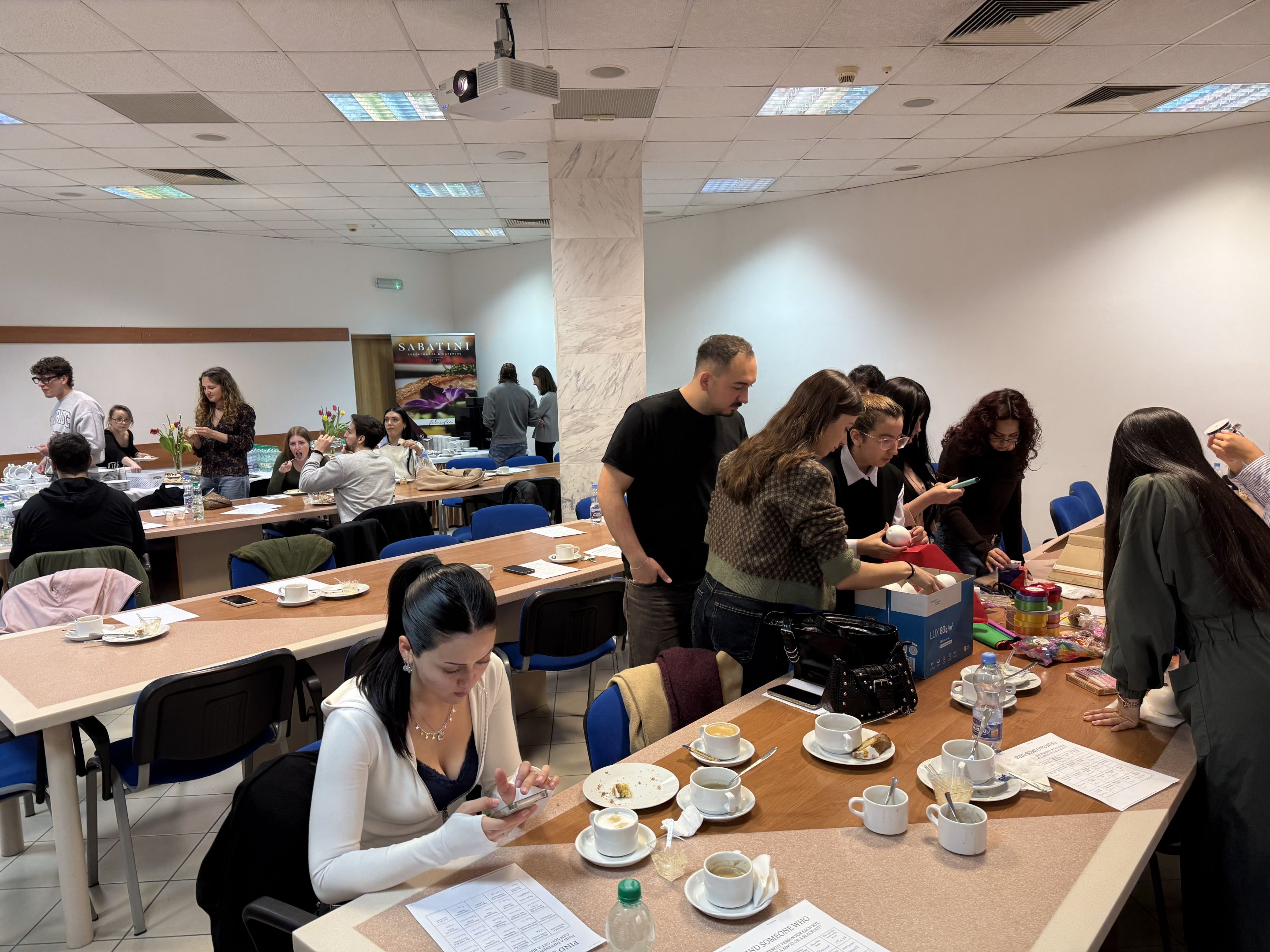 Po części edukacyjnej uczestnicy mogli przejść do mniej formalnej części spotkania – wspólnego poczęstunku składającego się z tradycyjnych polskich potraw wielkanocnych. Była to nie tylko okazja do spróbowania lokalnej kuchni, ale także do swobodnych rozmów i lepszego poznania się. W miłej, integracyjnej atmosferze studenci wzięli następnie udział w grze Integration Bingo, która w ciekawy i angażujący sposób sprzyjała nawiązywaniu relacji między uczestnikami.