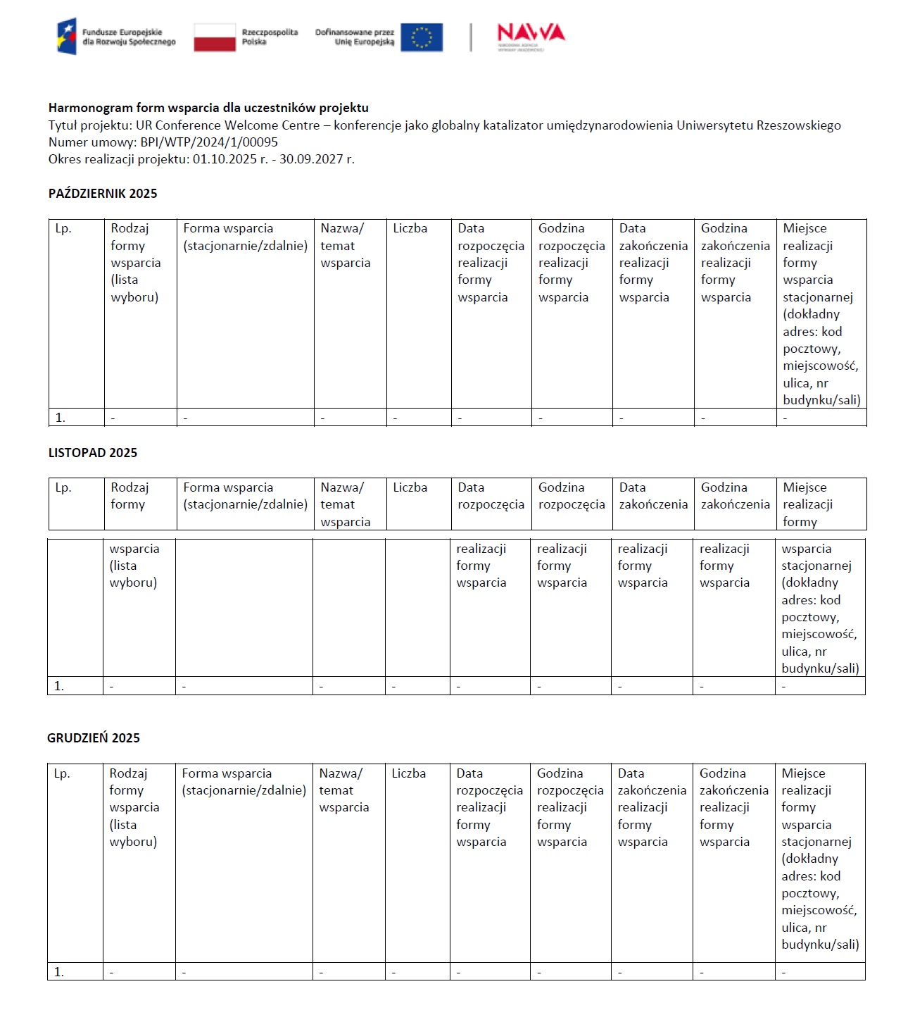 Projekt planowany jest na okres od 1 października 2025 roku do 30 września 2027 roku, co stanowi 24 miesiące intensywnych działań. Ten okres został zaplanowany tak, aby umożliwić skuteczne wdrożenie wszystkich kluczowych działań, od przygotowania kadry i organizacji konferencji, po obsługę międzynarodowych konferencji.