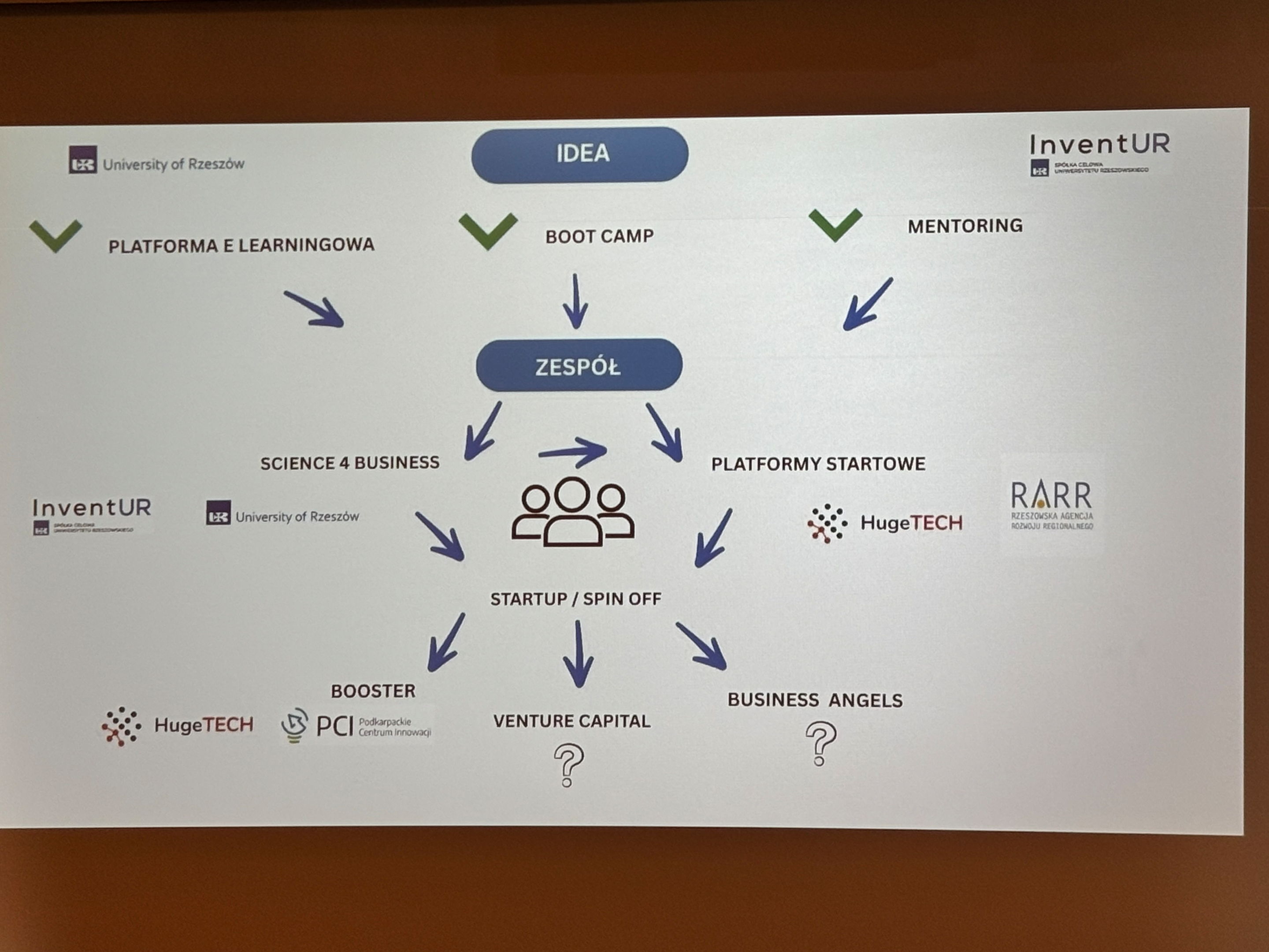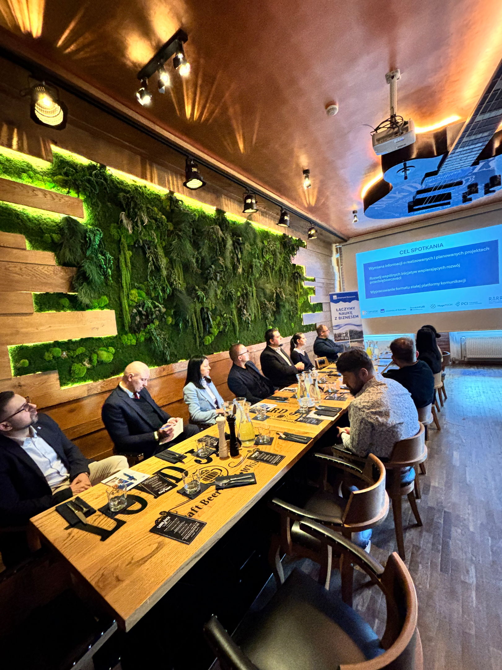The meeting was attended by representatives of the City of Rzeszów, led by Deputy Mayor Krzysztof Stańko; representatives of the Rzeszów Regional Development Agency, including Vice President of the Board Krystian Kapinos; the Podkarpackie Center for Innovation, represented by Timea Sulenta-Pluta, Managing Director for Research Commercialization; as well as the company Hugetech, represented by its President Daniel Dereniowski. The discussion and proceedings were moderated by Bartosz Jadam, Director of the University Center for Technology Transfer.