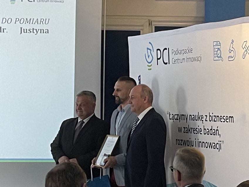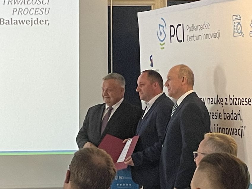 Z rąk pana Stanisława Kruczka – członka Zarządu Województwa Podkarpackiego oraz pana Jacka Kubraka – Prezesa Podkarpackiego Centrum Innowacji złote i srebrne medale odebrali przedstawiciele zespołów twórców nagrodzonych wynalazków.