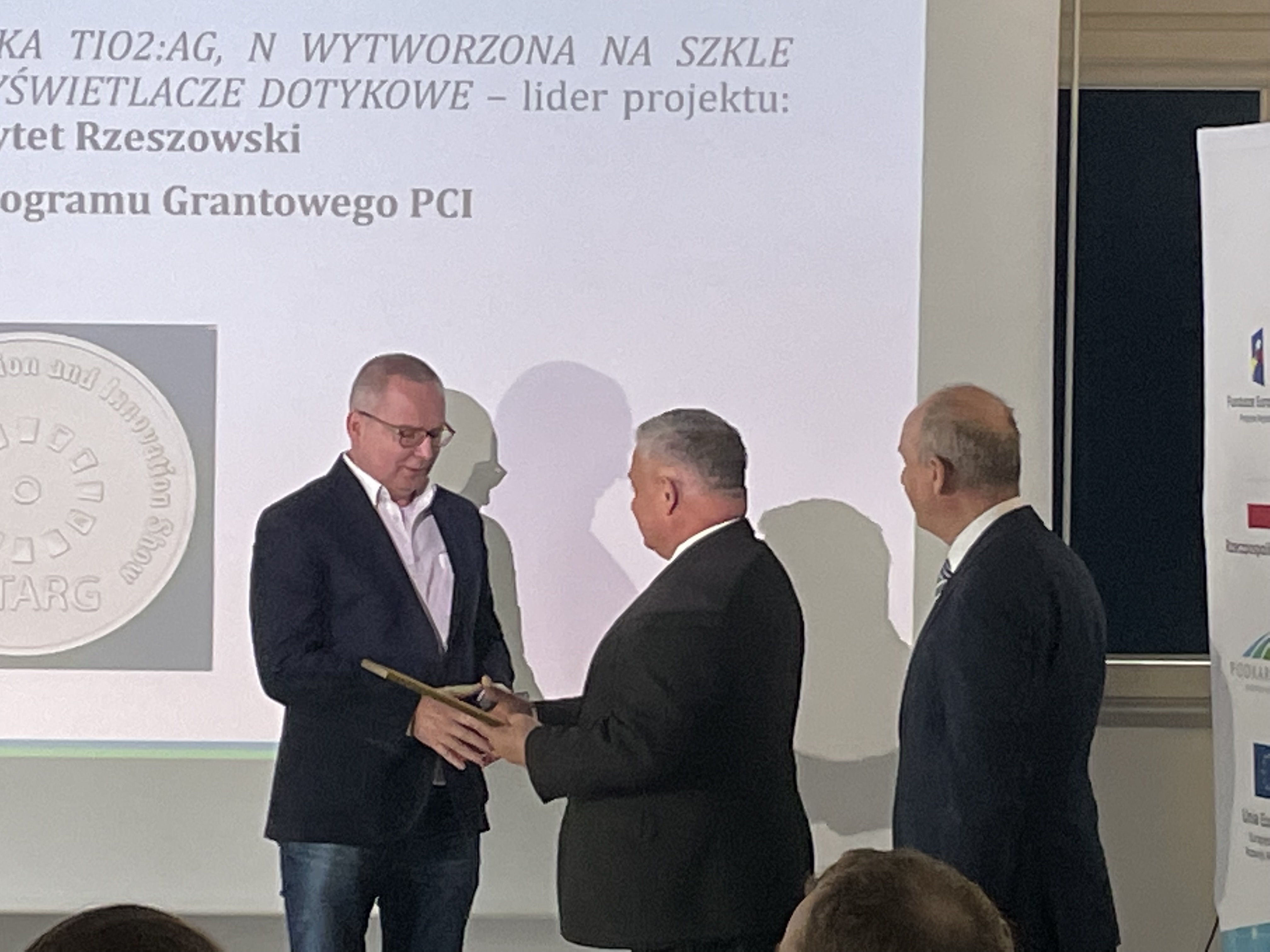 - Antybakteryjna Powłoka TiO2:Ag, N Wytworzona na Szkle Hartowanym Naklejanym na Wyświetlacze Dotykowe opracowany przez zespół naukowy z Kolegium Nauk Przyrodniczych i Kolegium Nauk Medycznych: dr hab. Andrzej Dziedzic, prof. UR, dr Stanisław Adamiak, dr hab. inż. Anna Żaczek, prof. UR, dr hab. Andrzej Wal, prof. UR, mgr inż. Bartosz Zdeb