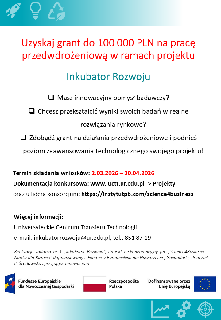 „Inkubator Rozwoju”, w ramach projektu pn. „Science4Business - Nauka dla Biznesu”