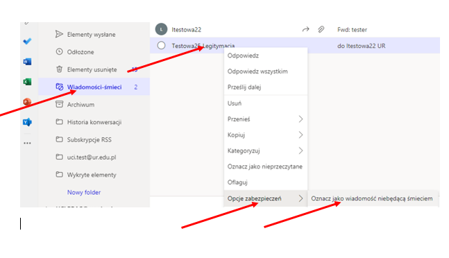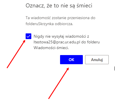 Drugi sposób – kiedy wiadomość trafiła już do folderu Wiadomości-śmieci: