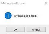 Instalację Zestawów należy przeprowadzić z odrębnego instalatora dostępnego na stronie: https://www.statsoft.pl/do-pobrania/33bid0fdqs (dostępny po założeniu konta na stronie StatSoft Polska i zalogowaniu). Po instalacji dodatku należy zapisać na dysku komputera (najlepiej w folderze instalacyjnym Zestawów analitycznych – domyślnie jest to folder C:\Program Files\StatSoft\StatSoftAddInns\) plik licencji o nazwie License.xml w załączeniu (Proszę pamiętać o rozpakowaniu pliku z licencją, gdyż tuż po pobraniu jest on spakowany). Następnie uruchamiamy Statistica – podczas uruchamiania programu Statistica pojawi się następujące okno „Moduły analityczne”: