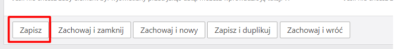 Po uzupełnieniu wymaganych pól, ostatnim krokiem jaki należy wykonać jest zapisanie zmian. Służy do tego opcja "Zapisz" znajdująca się na samym dole po lewej stronie: