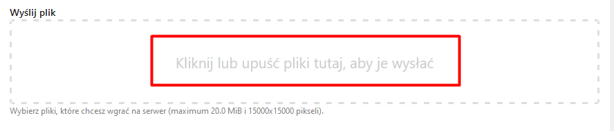 Następnie u góry należy wybrać opcję "Wyślij pliki":