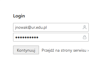 Login - tutaj należy wpisać swój adres służbowy wraz z domeną @ur.edu.pl