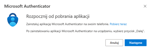 - a) Microsoft Authenticator to aplikacja mobilna, która pozwala na weryfikację logowań użytkowników. Aby z niej skorzystać należy pobrać ją i zainstalować na swoim smartfonie ze sklepu przypisanego do swojego modelu telefonu (App store / Sklep play) lub bezpośrednio ze strony producenta https://www.microsoft.com/pl-pl/security/mobile-authenticator-app , a następnie odpowiednio skonfigurować, zgodnie z instrukcjami na ekranie.