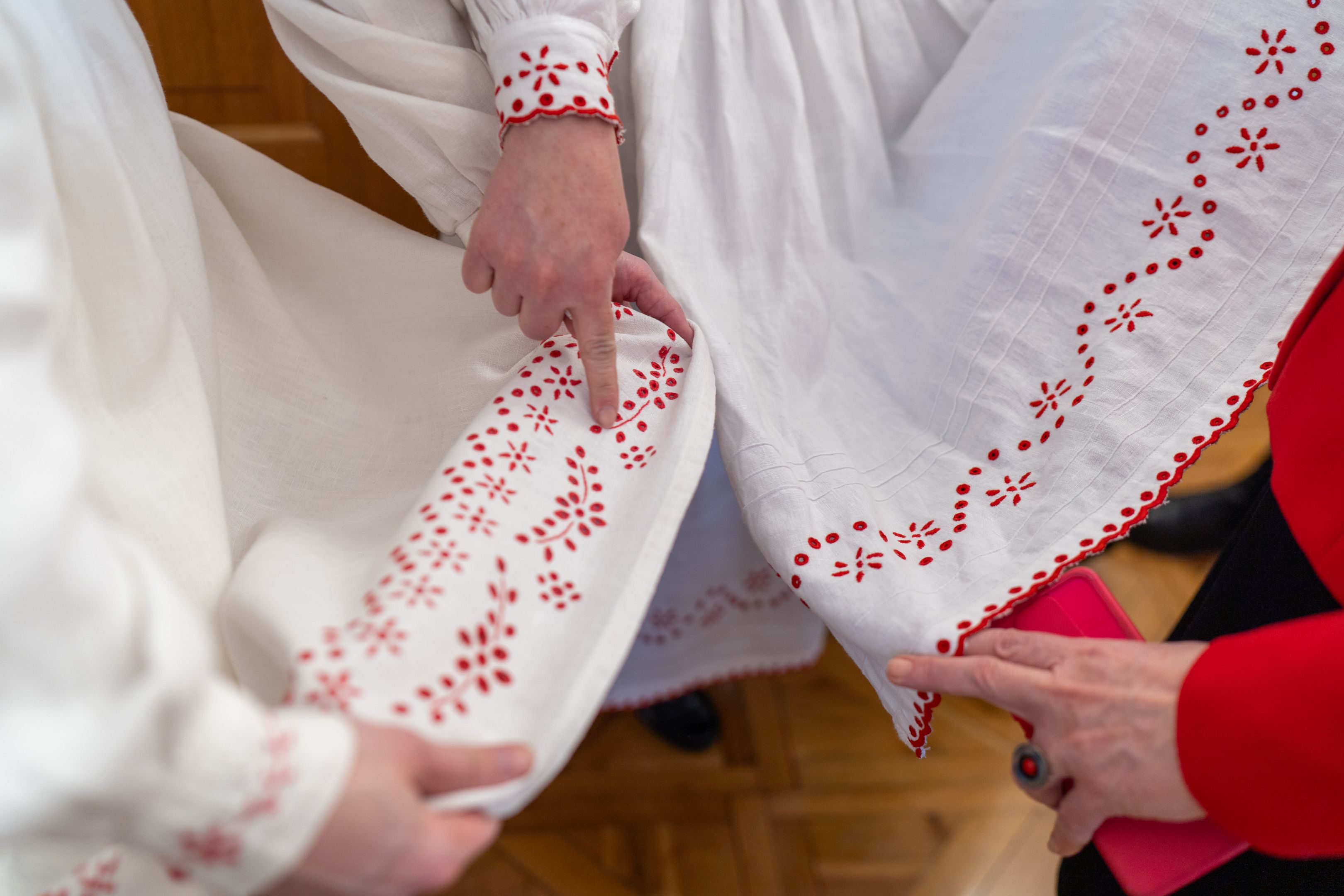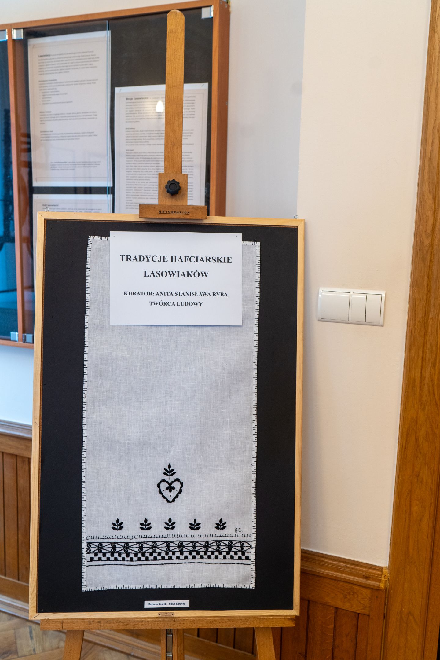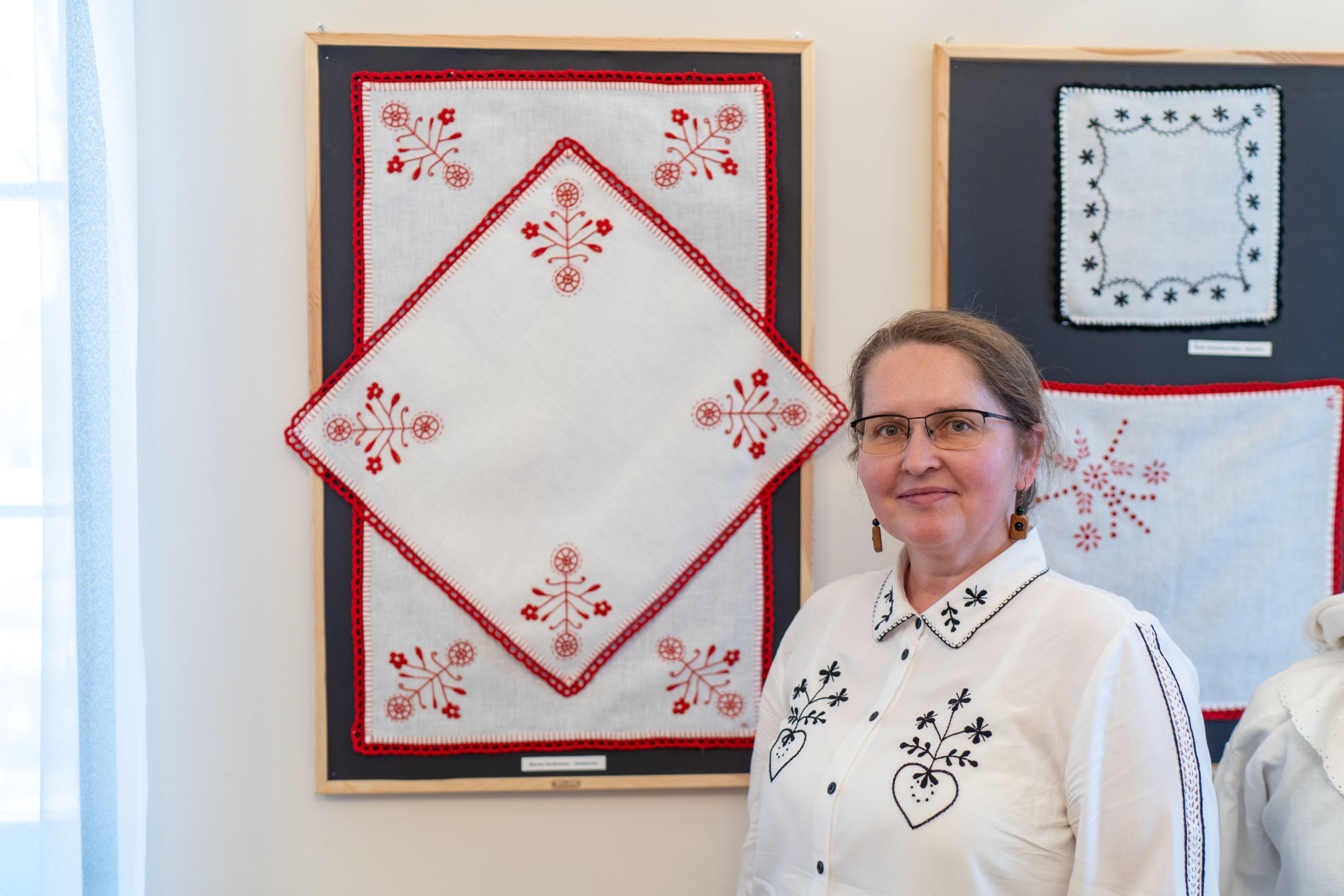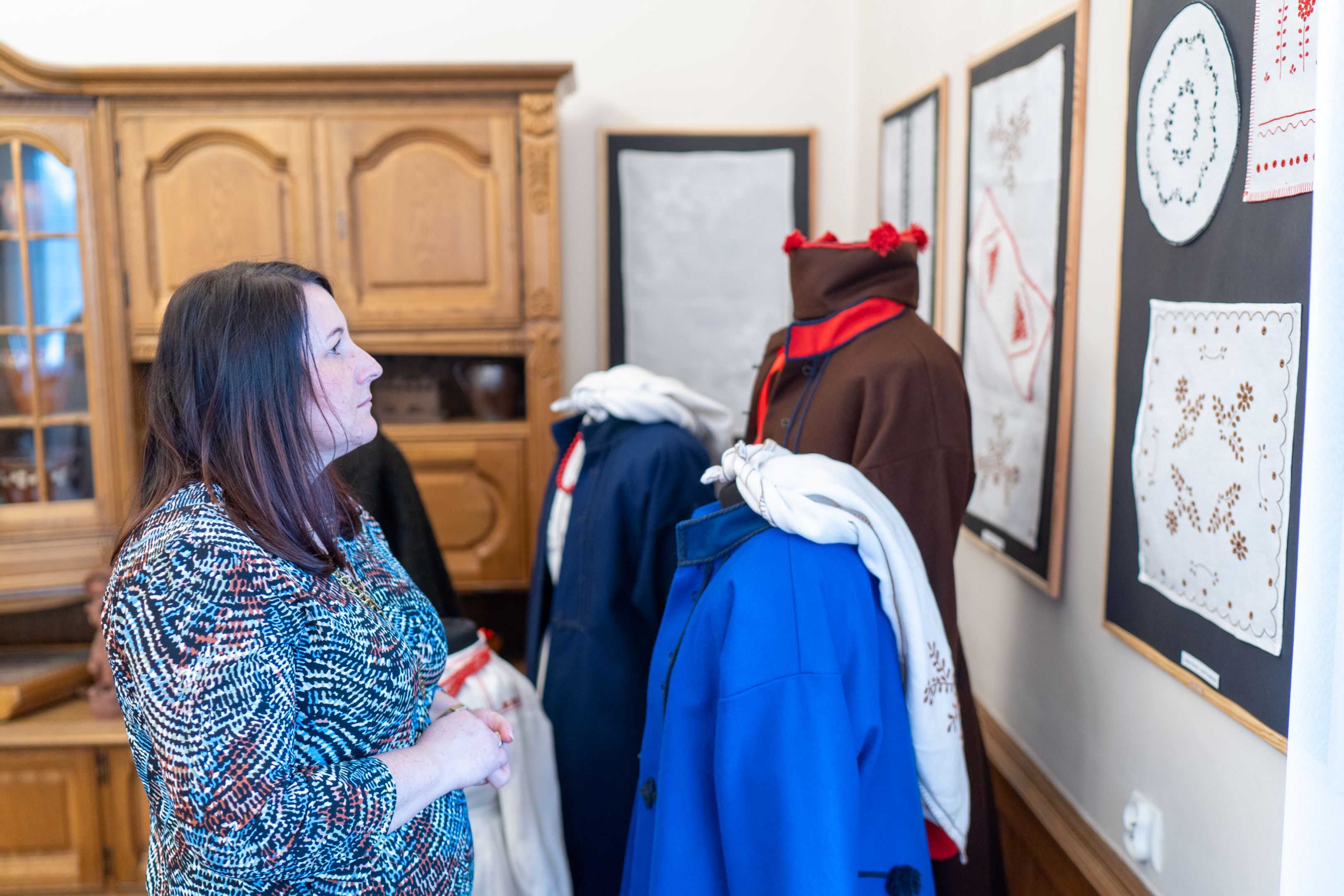 Następnie głos zabrała kuratorka wystawy Anita Stanisława Ryba, która opowiedziała o tradycjach hafciarskich Lasowiaków, charakterystycznych wzorach, symbolice kolorów oraz o elementach stroju dawniej i współcześnie zdobionych haftem.