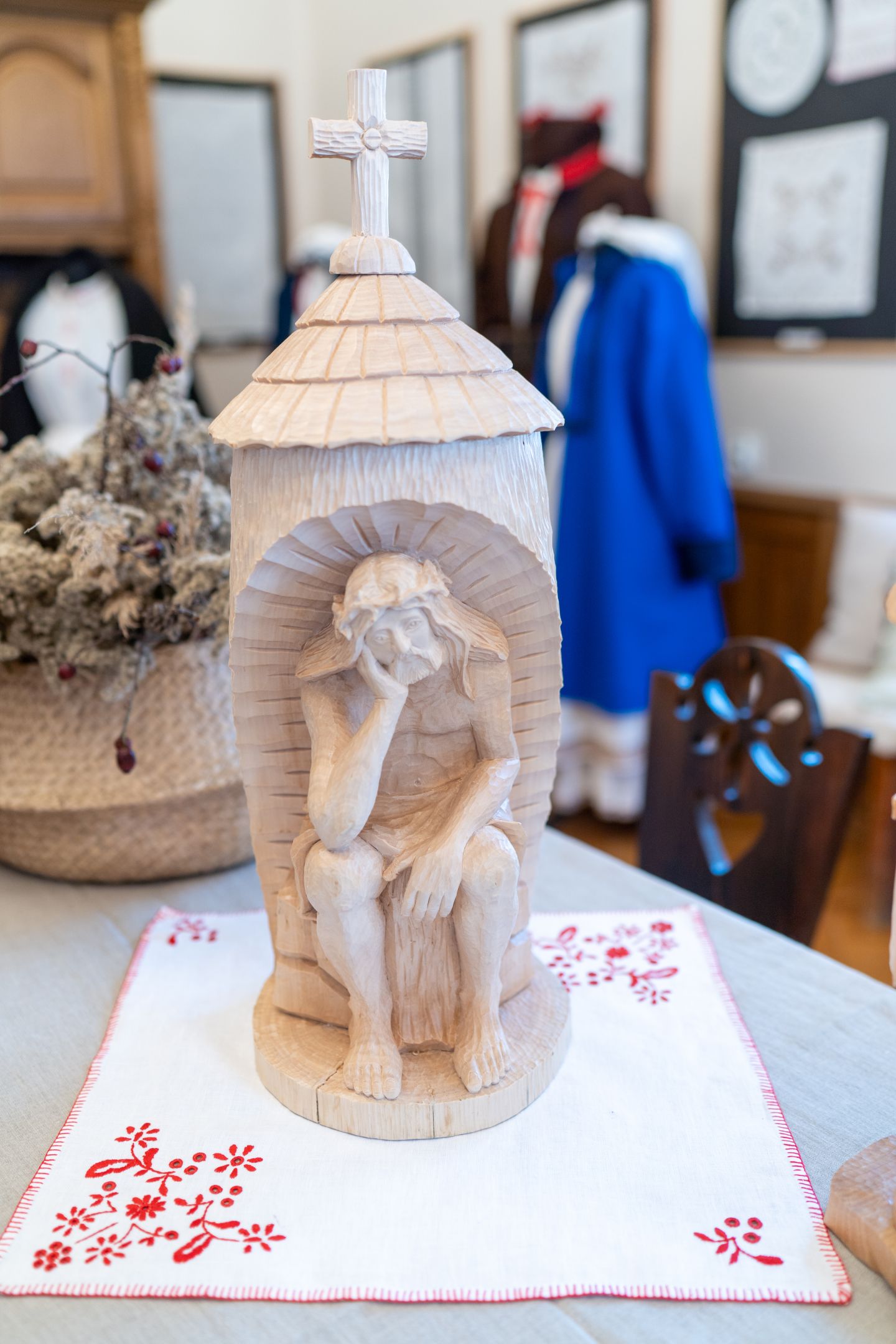Wyrazy wdzięczności składamy również Panu Stanisławowi Pałce – twórcy ludowemu – za udostępnienie rzeźb i zabawek ludowych, które można podziwiać na wystawie.