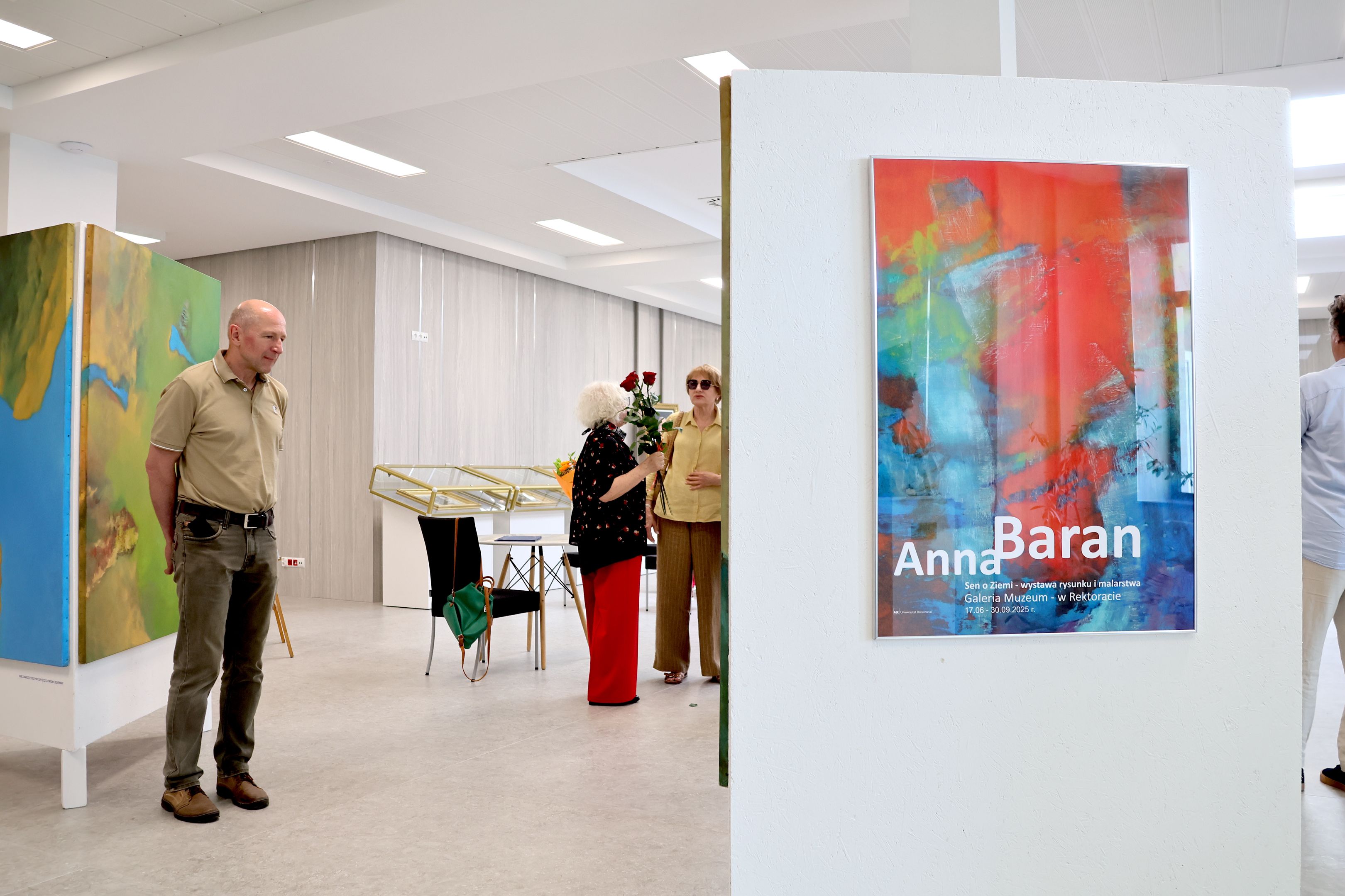 17 czerwca br., w Galerii Muzeum – Przy Rektoracie Uniwersytetu Rzeszowskiego odbył się uroczysty wernisaż wystawy malarstwa i rysunku autorstwa dr hab. Anny Baran, prof. UR, zatytułowanej „Sen o Ziemi”. Wydarzenie zgromadziło liczne grono uczestników – przedstawicieli środowiska akademickiego, miłośników sztuki oraz zaproszonych gości. Swoją obecnością wernisaż uświetnił Rektor Uniwersytetu Rzeszowskiego, prof. dr hab. Adam Reich.