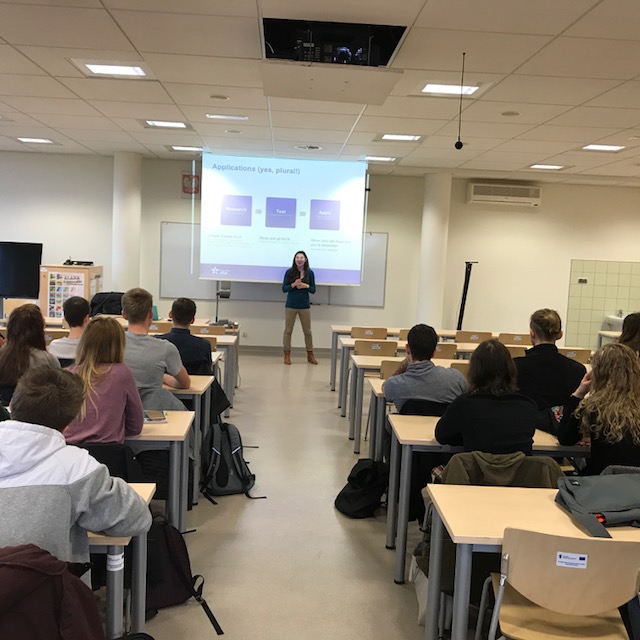 Outside of the classroom, I have had many opportunities to get to know the community. I’ve done presentations about American culture at local schools. This has been a great opportunity to spread information about my own culture while also entertaining questions from curious students. I’ve participated in the local Language Café, which provides the opportunity for cultural exchange between Poles and internationals from all over the world. Additionally, participation in an English language club has given me a deeper connection with locals. I’ve done a workshop about public speaking and given tips on success. I’m currently helping a Polish student apply to U.S. schools. I’ve been trying to learn the Polish language. By doing all these things and more, I’ve become closer to a community that I have come to love.