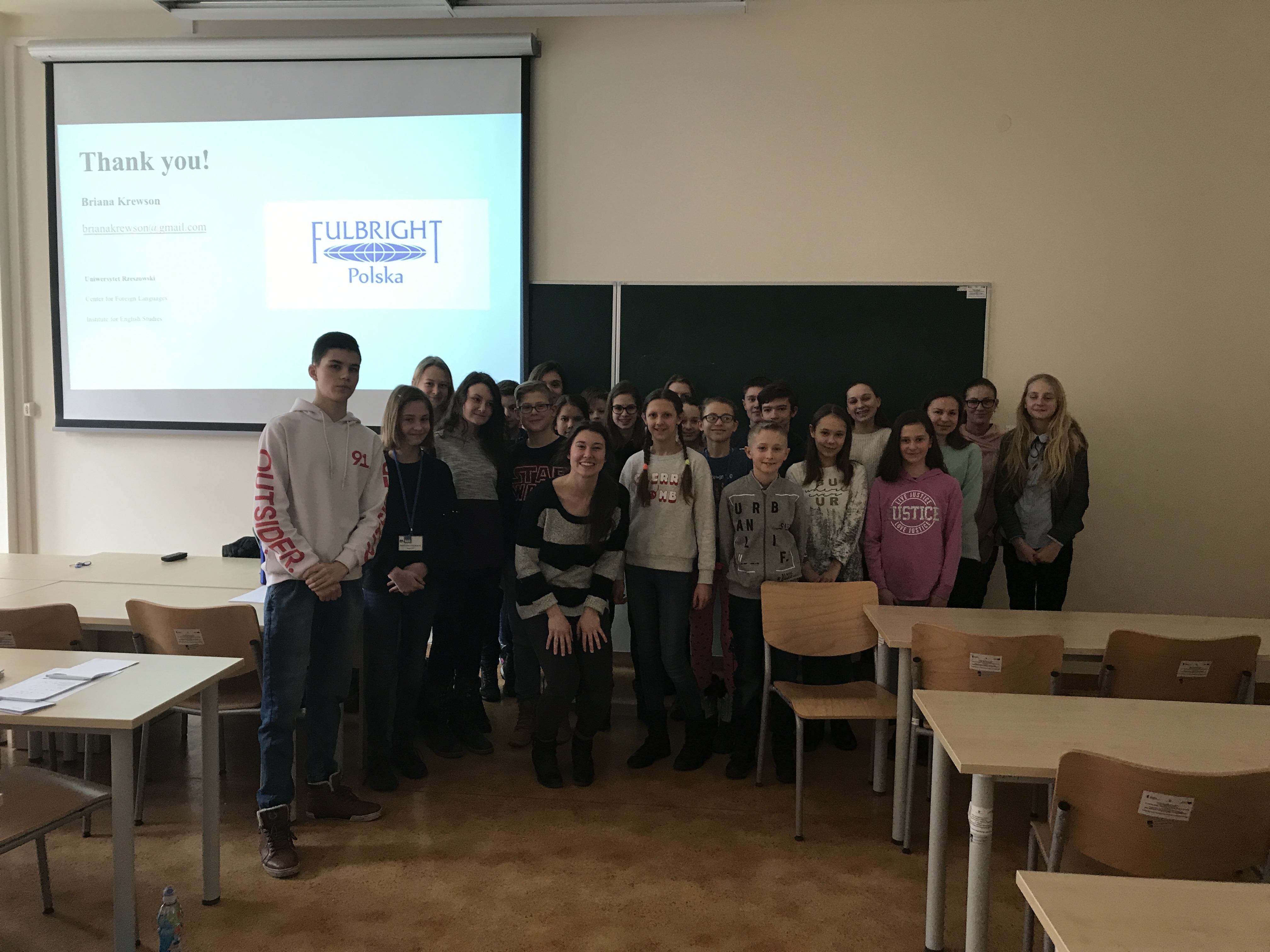 W dniu 24 lutego 2018 r. odbyły się zajęcia w ramach Małego Uniwersytetu Rzeszowskiego prowadzone również przez stypendystkę Polsko-Amerykańskiej Komisji Fulbrighta ze Stanów Zjednoczonych, Brianę Krewson. W zajęciach poświęconych amerykańskim regionom i muzyce uczestniczyli uczniowie szkół z Rzeszowa i okolic.