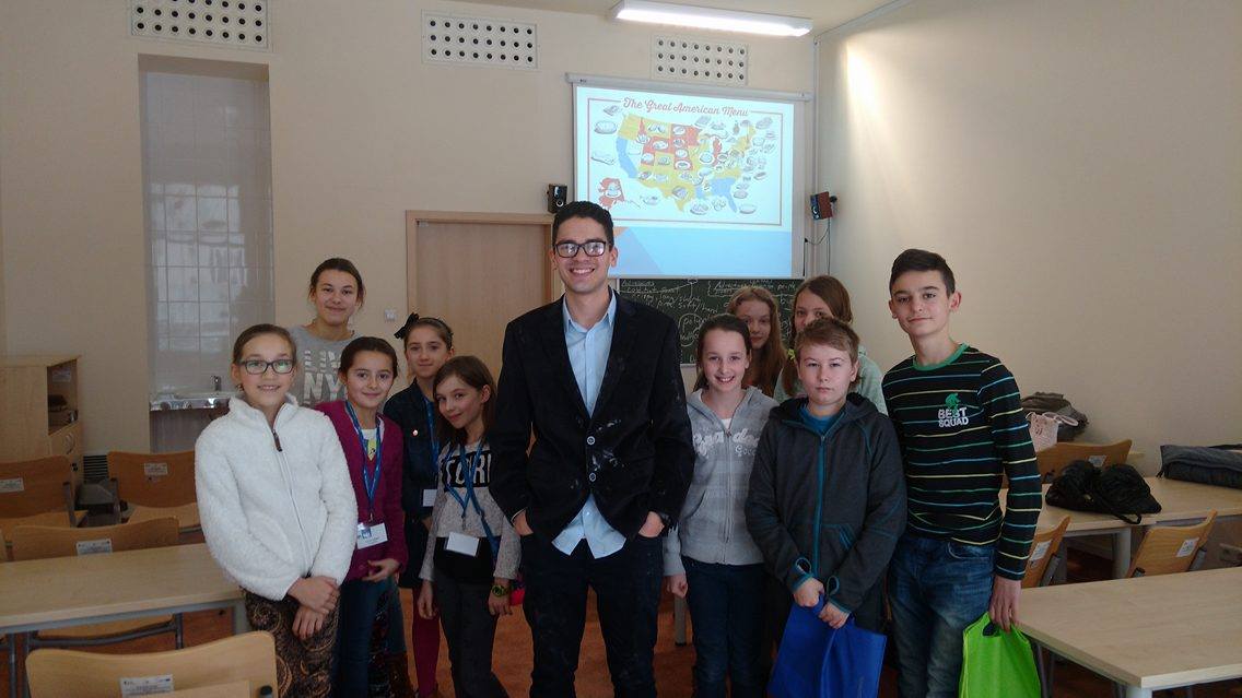 Continuing community engagement in Rzeszow has been an integral part of my time as a Fulbrighter here. I continued the tradition of doing school presentations in the local community, including different 'Podstawowa,' 'Gimnazium,' 'Technicum' and 'Liceum' and even went as far as Mielec to give a presentation about American culture! These presentations are the best way for locals to learn more about America and have been an absolute joy for me to give. While listening and asking questions, the students have shown impressive enthusiasm which in turn increased my positive energy to give informative and entertaining presentations. I was also able to participate in "Children's University" which allowed me give a native English lesson to younger members of the community. Additionally, I brought students from Rzeszow and Jaroslaw to the American Consulate in Krakow to hear more about the work that goes on there. Furthermore, setting up a informational booth during International Education Week regarding higher level study in the US allowed me to inform interested students in the possibility for them to get a fantastic education in the states. Continuing to attend the local language cafe has allowed thorough exchange of language and ideas, which has been instrumental by allowing me to create closer ties to the community. Interviewing on the radio, hosting another Fulbrighter in my classes, hosting a local essay competition winner in my class, conducting school presentations with last year's ETA .Kevin Kareckas and more all illustrate the interest I have for the community and vice versa.