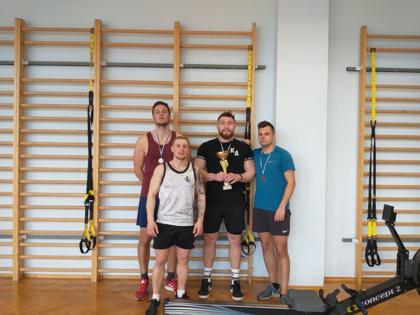 Chwilę potem do rywalizacji stanęli mężczyźni. Najlepszy okazał się nasz indywidualny Akademicki Mistrz Polski w Uniwersytetach Piotr Kotyla, który dodatkowo uzyskał swój rekord życiowy na 1000 metrów. Czas 2.53,0 był o prawie 4 sekundy lepszy od czasu, z którym uzyskał tytuł Mistrza w listopadzie 2020 roku. Drugie miejsce zajął Bartłomiej Paczkowski, który do sekcji trafił w bieżącym roku akademickim. Bartek złamał barierę trzech minut 2.56,7. Trzecie miejsce zajął Maciej Tomaszewski 3.14,5, a stawkę uzupełnił Tomasz Hulewicz, 3.15.9, który zajął 5 miejsce. Drużynowo mężczyźni wygrali.