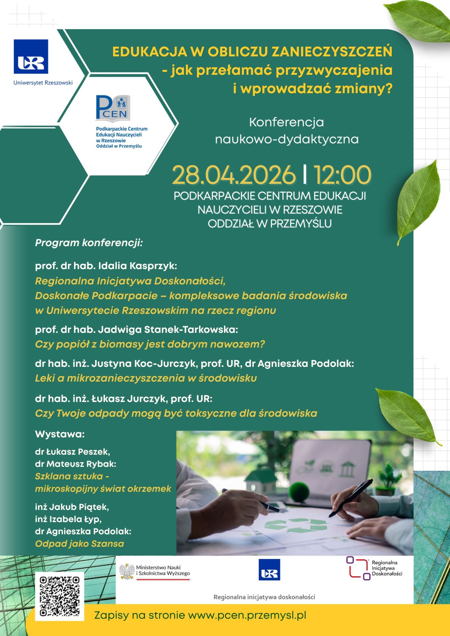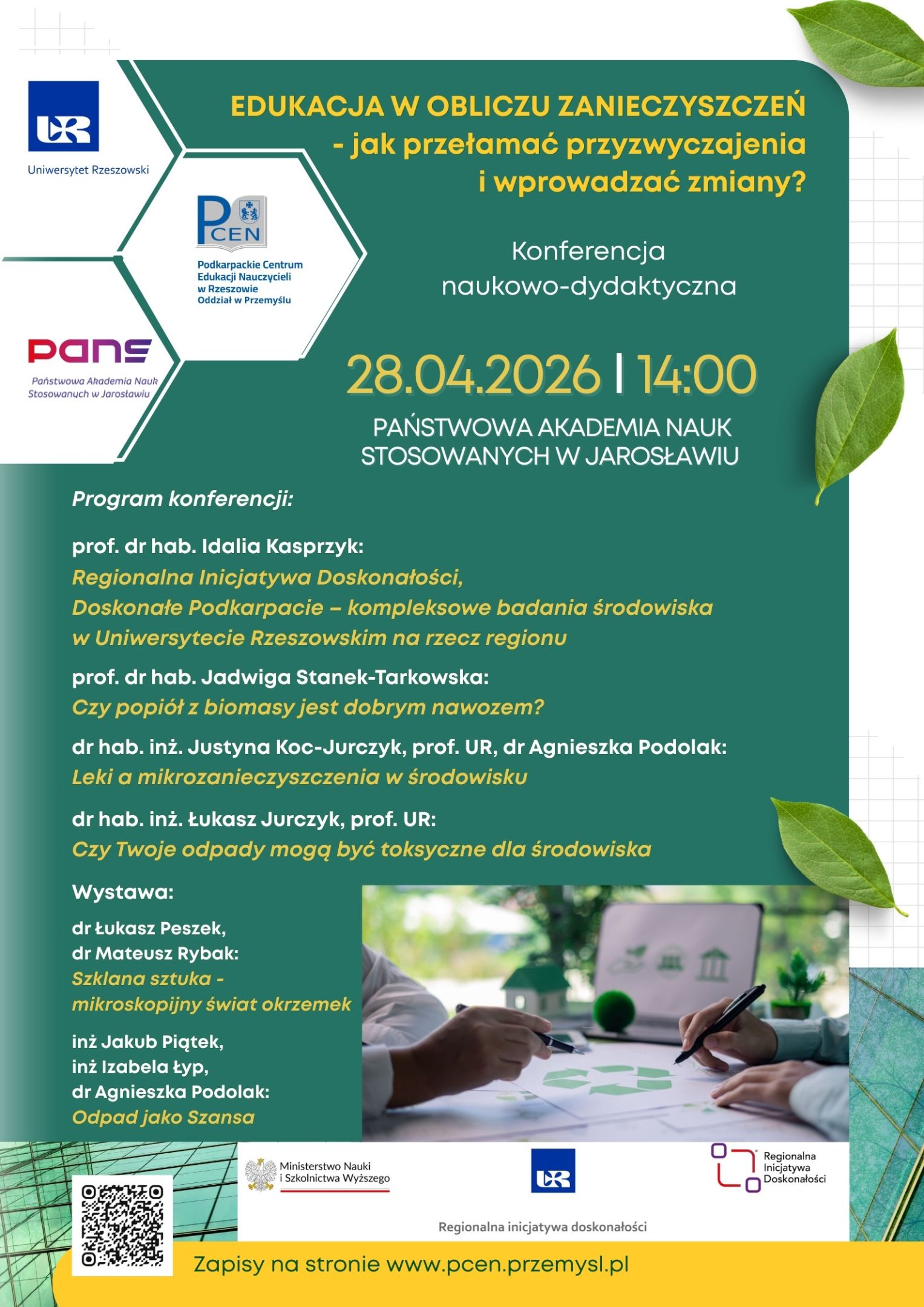 Serdecznie zapraszamy do udziału w konferencji naukowo-dydaktycznej „Edukacja w Obliczu Zanieczyszczeń - jak przełamać przyzwyczajenia i wprowadzać zmiany?”, poświęconej współczesnym wyzwaniom związanym z problematyką ochrony środowiska. Wydarzenie stanowi przestrzeń do wymiany wiedzy, doświadczeń oraz dobrych praktyk pomiędzy przedstawicielami środowiska naukowego, dydaktycznego i edukacyjnego.