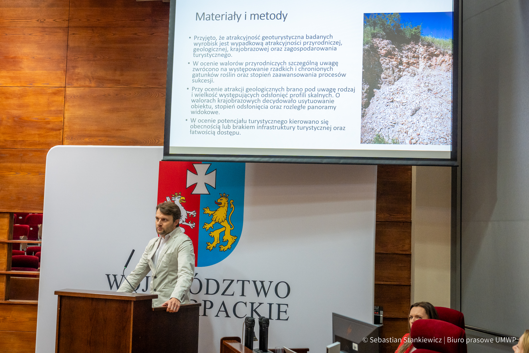 Wystąpienia miały na celu pokazanie, jak unikatowe elementy przyrody nieożywionej – takie jak stanowiska paleontologiczne czy nieczynne kamieniołomy – mogą stać się podstawą ciekawych i nowoczesnych produktów turystycznych regionu. Zwrócono również uwagę na praktyczne metody oceny walorów krajobrazowych tras, które mogą wspierać planowanie zrównoważonej turystyki na Podkarpaciu.