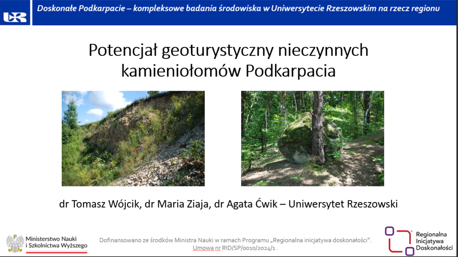 „Potencjał geoturystyczny nieczynnych kamieniołomów Podkarpacia”(dr T. Wójcik we współpracy z dr M. Ziają, dr A. Ćwik)