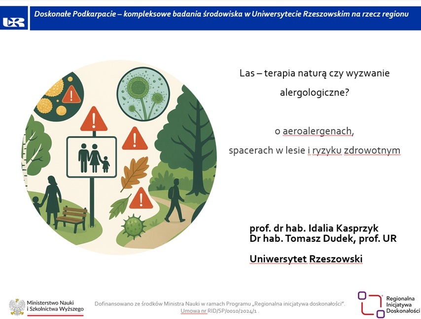 Podczas konferencji prof. Kasprzyk wygłosiła referat pt. „Las – terapia naturą czy wyzwanie alergologiczne?”, w którym podjęła temat aeroalergenów oraz potencjalnych skutków zdrowotnych związanych ze spacerami w lesie. Zwróciła uwagę, że choć kontakt z naturą bywa postrzegany jako element terapii, może również stanowić wyzwanie – szczególnie dla osób z alergiami. Przedstawiła efekty badań prowadzonych wspólnie z prof. Tomaszem Dudkiem, które są obecnie kontynuowane i rozwijane i przyczyniają się do lepszego zrozumienia zależności między ekosystemami leśnymi a zdrowiem człowieka.