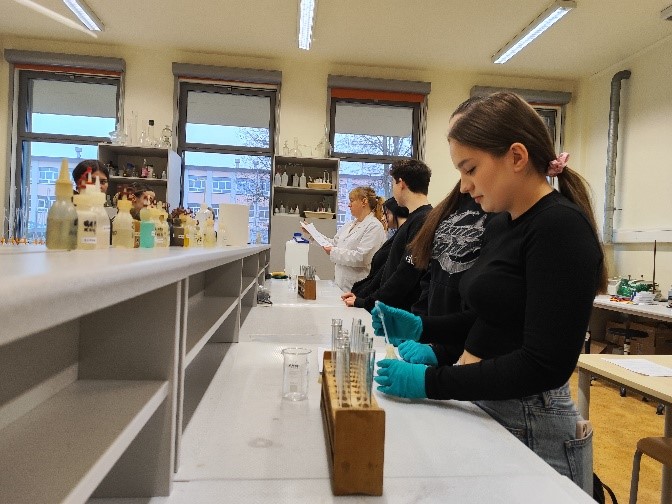 W dniu 6 lutego 2025r. odbyło się spotkanie dla uczniów Liceum Ogólnokształcącego im. ks. Piotra Skargi z Sędziszowa Małopolskiego. mgr inż. Bartosz Jagusztyn zaprezentował Wydział Biotechnologii, natomiast dr hab. inż. Magdalena Słowik-Borowiec, prof. UR, dr inż. Anna Górka, dr inż. Paulina Książek-Trela oraz student Jakub Mazur członek SKN BIO-TECH poprowadzili zajęcia laboratoryjne Analiza jakościowa jonów w próbkach środowiskowych i Chromatografia bez tajemnic.