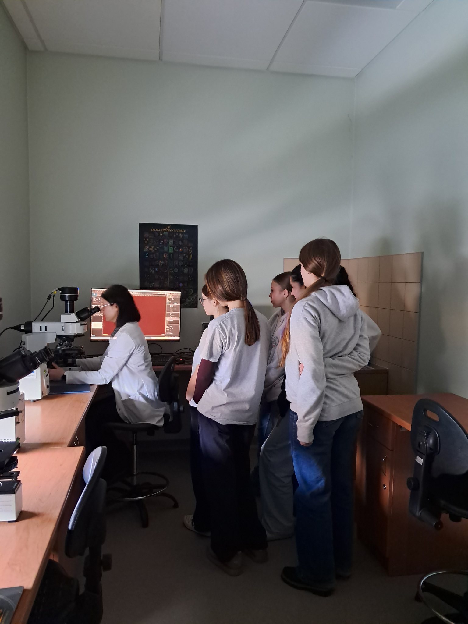 W trakcie warsztatów uczniowie mieli możliwość samodzielnej pracy laboratoryjnej i wykonania doświadczeń wykorzystujących analizy biochemiczne oraz technikę mikroskopii fluorescencyjnej.
