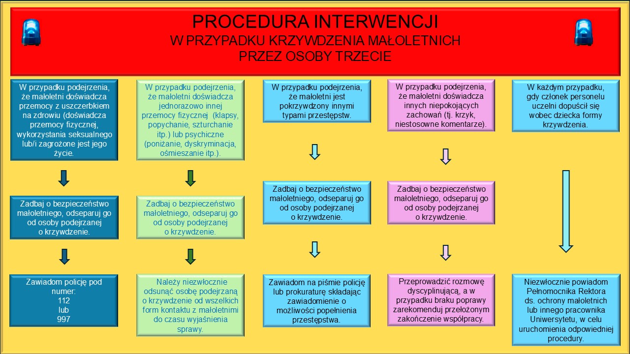 W przypadku doświadczenia jakiejkolwiek z form krzywdzenia ze strony osób dorosłych lub innych małoletnich lub podejrzenia o takim krzywdzeniu innego małoletniego, zawiadom Pełnomocnika Rektora ds. Ochrony Małoletnich (dane do kontaktu dostępne są na stronie internetowej Uniwersytetu) lub innego pracownika Uniwersytetu, w celu uruchomienia odpowiedniej procedury.