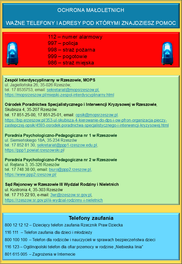 Najważniejszą zasadą wszelkich działań podejmowanych przez pracowników Uniwersytetu Rzeszowskiego jest działanie dla dobra małoletniego i w jego najlepszym interesie.