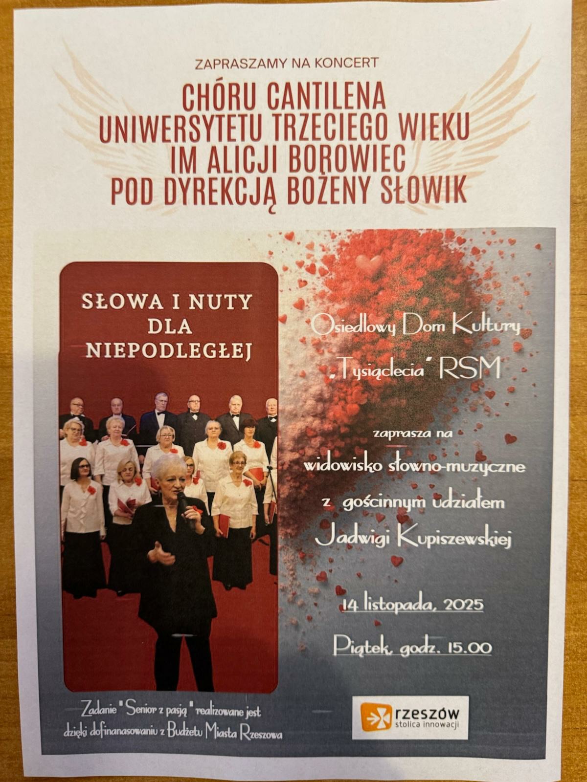 Koncert Patriotyczny z udziałem Chóru UTW-UR w dniu 14.11.2025.