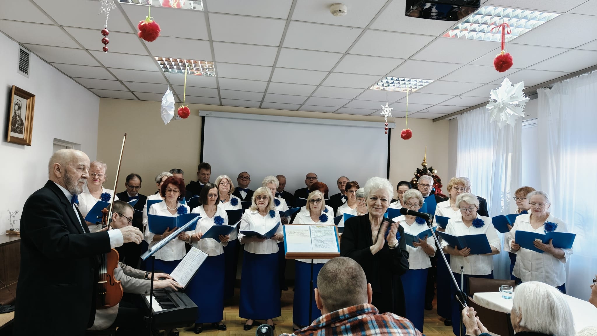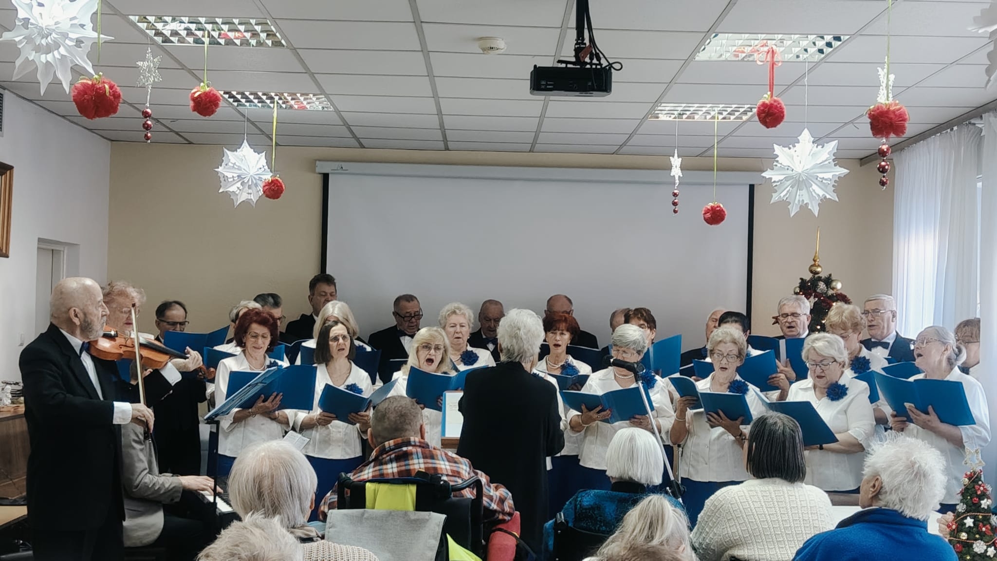 Styczeń to dla Chóru UTW-UR czas śpiewania kolęd. W tym sezonie chór zaprezentował po raz pierwszy repertuar kolędowy w DPS dla Kombatantów w Słocinie. Przybyliśmy na zaproszenie pani kierownik Heleny Wolan, która z wielką troską dba o swoich podopiecznych, organizując różne spotkania o charakterze rozrywkowym. Na dziś, tj. 21 stycznia 2026, zaplanowała spotkanie kolędowe, aby przedłużyć świąteczną atmosferę związaną z Bożym Narodzeniem. Chór pod dyrekcją Bożeny Słowik i przy akompaniamencie Ryszarda Picha (fortepian) i Jerzego Kokoszki (skrzypce) zaśpiewał 8 kolęd i 3 pastorałki. Ku naszej radości pensjonariusze DPS brali czynny udział w kolędowaniu. Dyrygentka i dyrektor artystyczny chóru - w jednej osobie, tak dobrała repertuar, aby każdy słuchacz odnalazł w nim swoją ulubioną kolędę lub pastorałkę. Złożyliśmy mieszkańcom i pracownikom DPS życzenie noworoczne w formie śpiewanej, winszując zdrowia, szczęścia, pokoju i spełnienia nadziei pokładanych w 2026 roku.