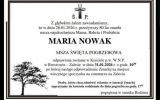 Bardzo trudno jest pogodzić się z odejściem tak wspaniałej osoby, jaką była Marysia. Obdarzona była ogromnym ciepłem, optymizmem, talentem śpiewaczym, pracowitością, odpowiedzialnością i chęcią pomocy innym ludziom. Gdy zapisała się do Uniwersytetu Trzeciego Wieku UR, od razu wstąpiła do „Zespołu Śpiewaczego”. W 2007 roku Marysia Nowak została kierowniczką chóru UTW-UR, który powstał w uzgodnieniu z ówczesną dyrektor Instytutu Muzyki UR prof. Martą Wierzbieniec. W tym czasie do chóru dołączyła śp. Alicja Borowiec, która pełniła funkcję skarbnika, fotografa, a potem menadżera chóru. Marysia i Alicja stanowiły świetny duet i dzięki ich działaniom chór UTW otrzymał oficjalną nazwę „Cantilena” i zaczął odnosić coraz większe sukcesy. Występował m.in. na różnych uroczystościach UTW-UR w auli Uniwersytetu Rzeszowskiego, w DPS-ach, Domach Kultury, w Radio Rzeszów, Ratuszu, w UTW w Mielcu i Jaśle, a także na Rzeszowskich Senioraliach. Najdalszą „trasą koncertową” chóru był wyjazd do Lwowa i występ w Brzuchowicach na zaproszenie tamtejszej Polonii. W zespole dzięki Marysi i Ali panowała rodzinna atmosfera, odbywały się liczne okolicznościowe spotkania, jak „opłatki” bożonarodzeniowe, „jajeczka” wielkanocne oraz wesołe, rozśpiewane ogniska organizowane w prywatnych ogrodach chórzystów. Dyrygenci i akompaniatorzy chóru się zmieniali, a Marysia niezmiennie przez ponad 15 lat świetnie kierowała chórem, który coraz więcej koncertował i zdobywał coraz więcej dyplomów uznania, nagród oraz dwukrotnie Grant Prix na Przeglądach Twórczości Artystycznej Seniorów w Stalowej Woli. W 2017 r. chór obchodził uroczyście w Instytucie Muzyki UR swoje 10-lecie i uzyskał nazwę Chór UTW-UR „Cantilena” im. Alicji Borowiec. Marysia wszystkie wydarzenia pięknie opisywała w kronikach chóru, ilustrowanych zdjęciami śp. Alicji. Ale też Marysia była solistką chóru i pięknie się prezentowała na scenie w stroju ludowym. Przez kilka kadencji była także członkiem komisji rewizyjnej SP UTW. Mając swoje dobre serce, bardzo aktywnie udzielała się też w różnych akcjach charytatywnych Caritasu. Należy jeszcze podkreślić ogromne zaangażowanie Marysi w sprawy rodzinne, wykazała się też wielkim humanitaryzmem opiekując się przez wiele lat swoim mężem do ostatnich dni jego życia.