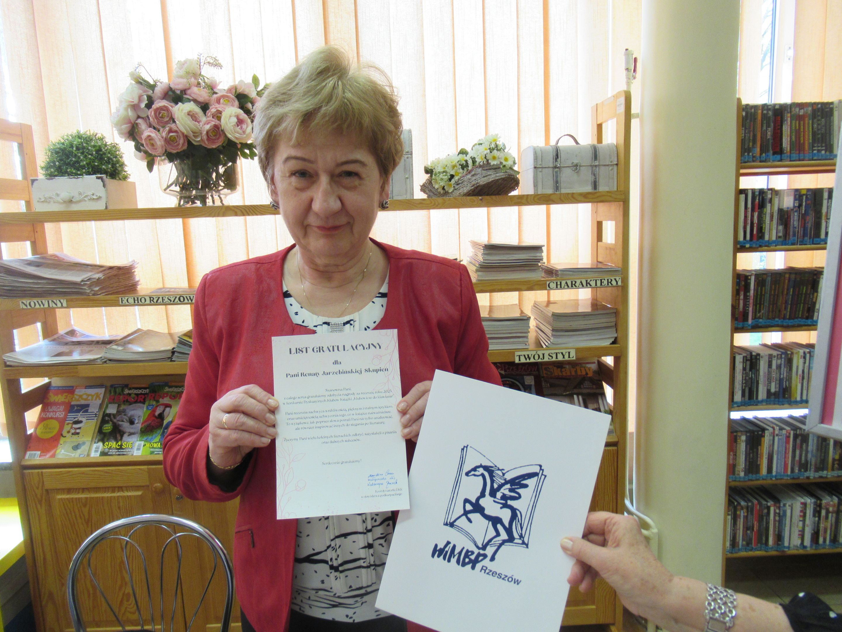 Kol. Renata Jarzębińska-Skupień odebrała Nagrodę za Recenzję Roku 2025 w konkursie "Klubowicze do klawiatur" Instytutu Książki - za recenzję książki Miriam Towers "Głosy kobiet".