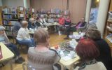 Życie, wg. Autora, ma szerszy kontekst, niż to potocznie przyjmujemy. Przychodzą nowe pokolenia, zmienia się środowisko społeczne, zmienia kultura i jej wartości – stąd ważnym jest, abyśmy my współcześni, pozostawili ślad w postaci naszego dorobku, nie tylko materialnego, ale również umysłowego i duchowego. W przekazie tym, oprócz nauk humanistycznych, ważną rolę może odegrać literatura bliska człowiekowi, sięgająca do jego bezpośredniego, żywego doświadczenia, wyrażająca się poprzez formy publicystyczne, jak również poezję, ukazującą świat przeżyć duchowych. Istotnym aspektem w twórczości autora są książki biograficzne, często wydane w formie wywiadu-rzeki. Jednocześnie pracy nad prozą towarzyszy wzmożona potrzeba pisania wierszy. Obecnie ulubionym gatunkiem prozatorskim naszego gościa jest felieton, zbliżający się formą do eseju. Stąd powstał zbiór opowieści – wspomnień „Dziennik końca świata”, wydany w 2019 roku. Na szczęście autor ma w planach opublikowanie „Dziennika pocieszenia”. Czekamy na niego z niecierpliwością! Ciekawą pozycją w twórczości autora są „Historie na każdą godzinę” – zbiór zapisanych spostrzeżeń i refleksji przez nie wywołanych. Są to krótkie teksty powstałe z bezpośrednich obserwacji otaczającego świata, mogące służyć do głębszych, wręcz medytacyjnych, przemyśleń. Literatura jest, wg słów autora, obszarem, który ma na celu doprowadzić do głębszego zrozumienia świata i do wzajemnego porozumienia pomiędzy ludźmi. Jest spotkaniem autora z czytelnikiem, wymianą myśli, która w dobie Internetu i social mediów jest bardzo ułatwiona. Dyskusja z czytelnikami miała żywy przebieg, urozmaicony licznymi anegdotami i wspomnieniami z dzieciństwa. Z dużym zainteresowaniem wszyscy słuchali o pracy nad biografią ks. prof. Józefa Tischnera. Dziękujemy Panu Wojciechowi Bonowiczowi za niezwykle interesujące pełne ciepła i wrażliwości spotkanie. Przybyłym przyjaciołom autora i czytelnikom Biblioteki za włączenie się do dyskusji.