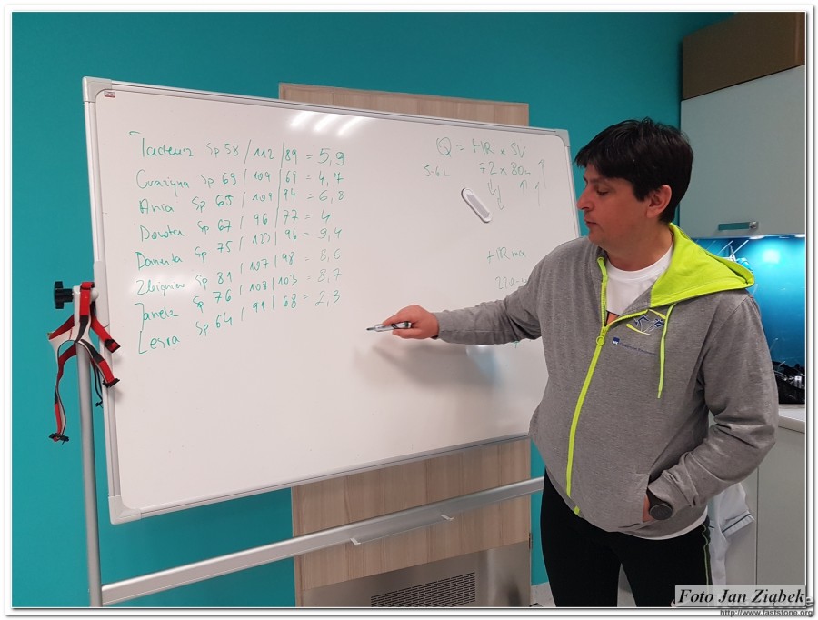 Pan Profesor przedstawił ciekawą prezentacje z badań prowadzonych od kilku lat sportowców i studentów, na specjalistycznej aparaturze badawczej w Pracowni Diagnostyki w Treningu Sportowym i Zdrowotnym UR (budynek na ul. Cichej 2a, obok akademików i Klubu Pod Palmą). Nowoczesna i specjalistyczna aparatura pomiarowa w laboratoriach pozwala zmierzyć wiele parametrów badanego, a naukowcy potrafią określić dokładnie wyniki wydolnościowe. Pozwala to na przykład na doskonalenie treningów sportowców (mistrzów krajowych i europejskich np. w siatkówce) oraz masowego określania poziomu wydolności studentów. Dla zainteresowanych zdrowiem, opracowane zostały w Instytucie i udostępnione aplikacje komórkowe do bieżącego śledzenia aktualnej wydolności organizmu (np. Studentfit).