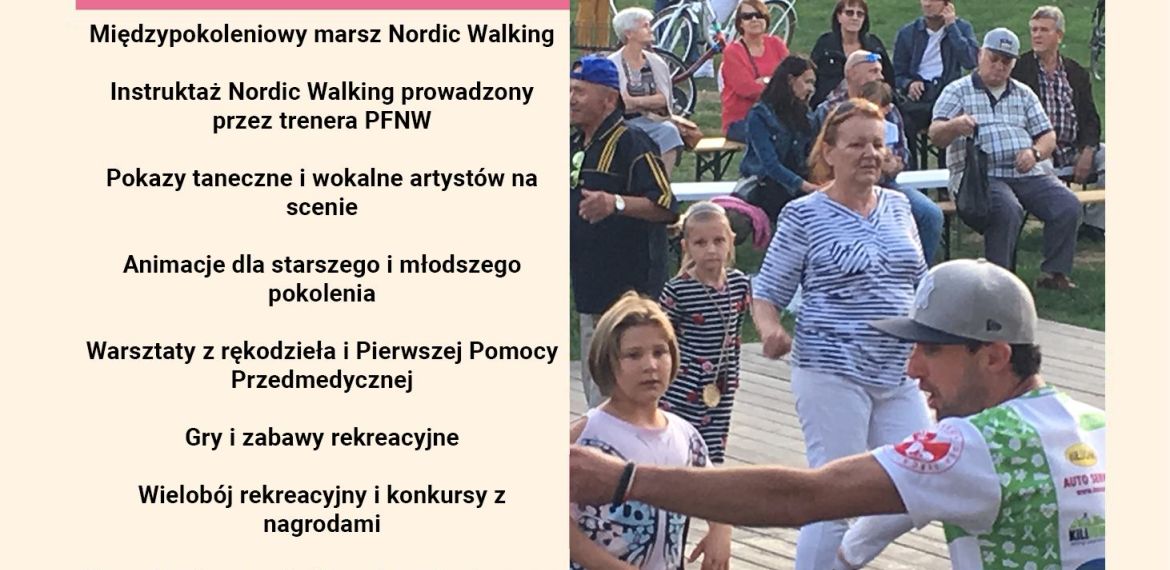 W programie pokazy wokalne i taneczne na scenie, o 14:00 międzypokoleniowy marsz Nordic Walking oraz losowanie nagród wśród uczestników marszu. Gry i zabawy rekreacyjne,kKonkurencje z rywalizacją o nagrody, które zasponsorował Decathlon, SELVECO, Instytut Podologiczny, Teatr im. Wandy Siemaszkowej .