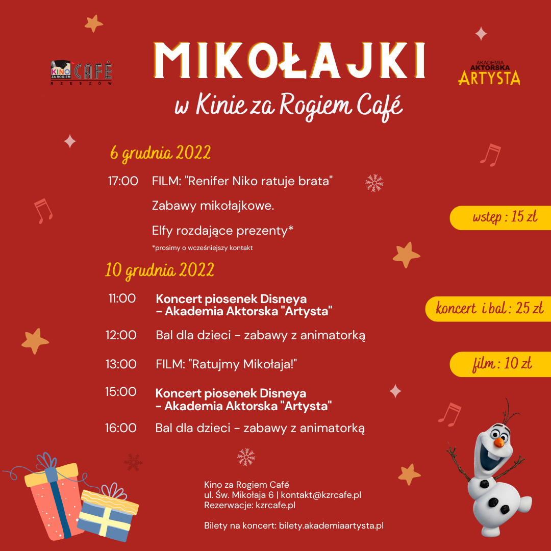 Ho, ho, ho! Drogie Dzieci i Rodzice, Mikołajki świętujemy z Wami muzycznie, filmowo i z wieloma atrakcjami!