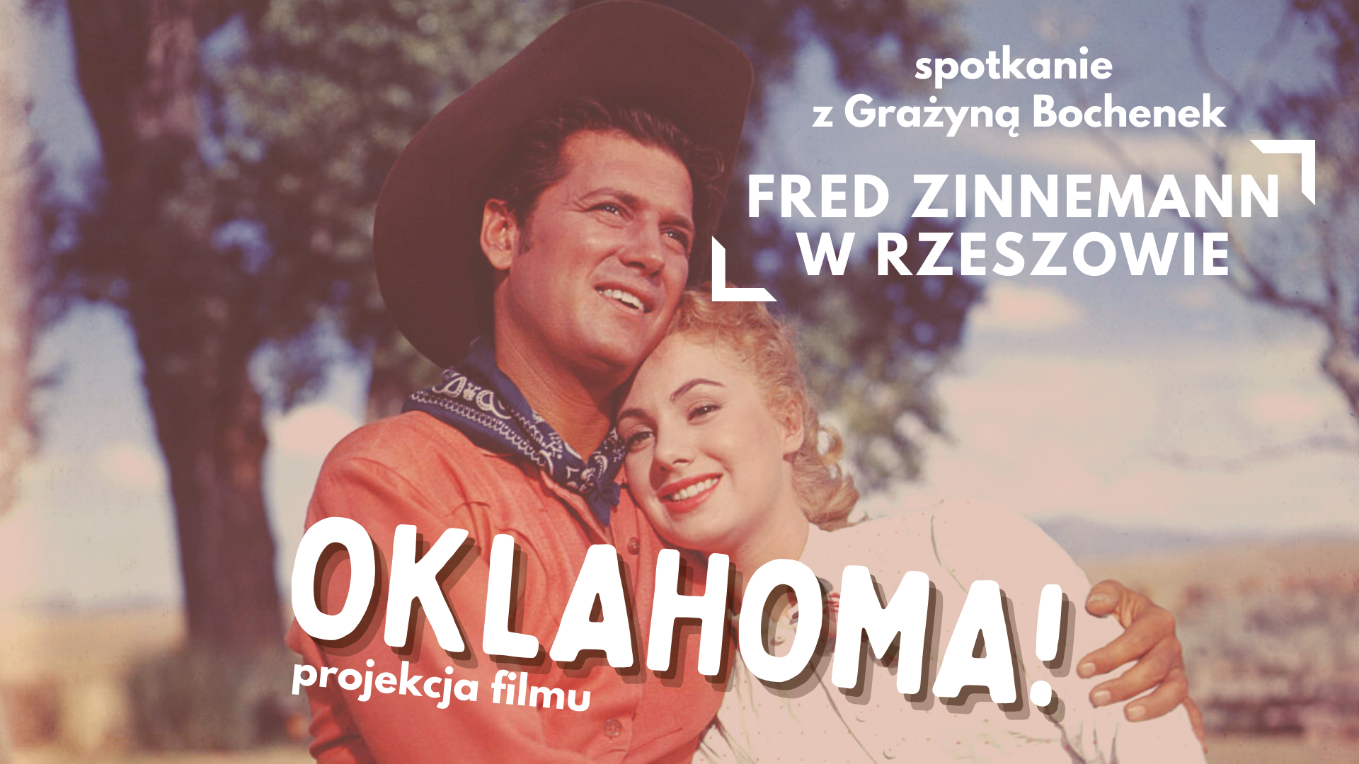 Wieczór rozpocznie spotkanie autorskie z Grażyną Bochenek - autorką książki „Fredek, Rzeszów, Hollywood. Opowieści o Fredzie Zinnemannie”. W rozmowie, którą poprowadzi filmoznawczyni Katarzyna Wajda, prześledzimy twórczość słynnego reżysera oraz poznamy rzeszowskie wątki jego biografii. Zwieńczeniem wieczoru z Fredem Zinnemannem będzie projekcja jego filmu – „Oklahoma” (1955), który jest świetnym połączeniem dwóch gatunków: musicalu i westernu.