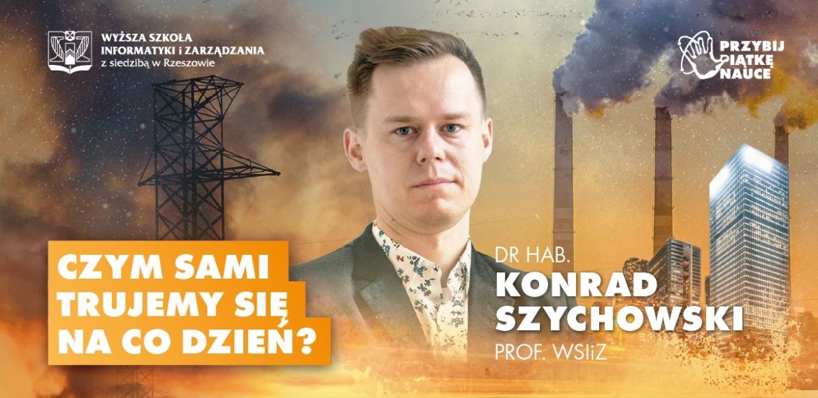 Wyższa Szkoła Informatyki i Zarządzania w Rzeszowie zaprasza do udziału w wykładzie pt. „Czym sami trujemy się na co dzień?”, który wygłosi dr hab. Konrad Szychowski, prof. WSIiZ. Premiera spotkania odbędzie się 16 czerwca br. (środa), godz. 18.00 na Facebooku WSIiZ. Spotkanie realizowane będzie w ramach projektu „Przybij piątkę nauce”.