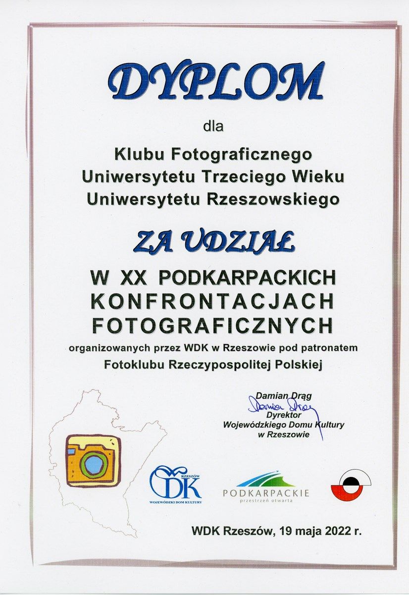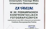 W maju odbył się w Wojewódzkim Domu Kultury wernisaż XX Podkarpackich Konfrontacji Fotograficznych, w których uczestniczył kolejny raz nasz Klub Fotografii UTW-UR.