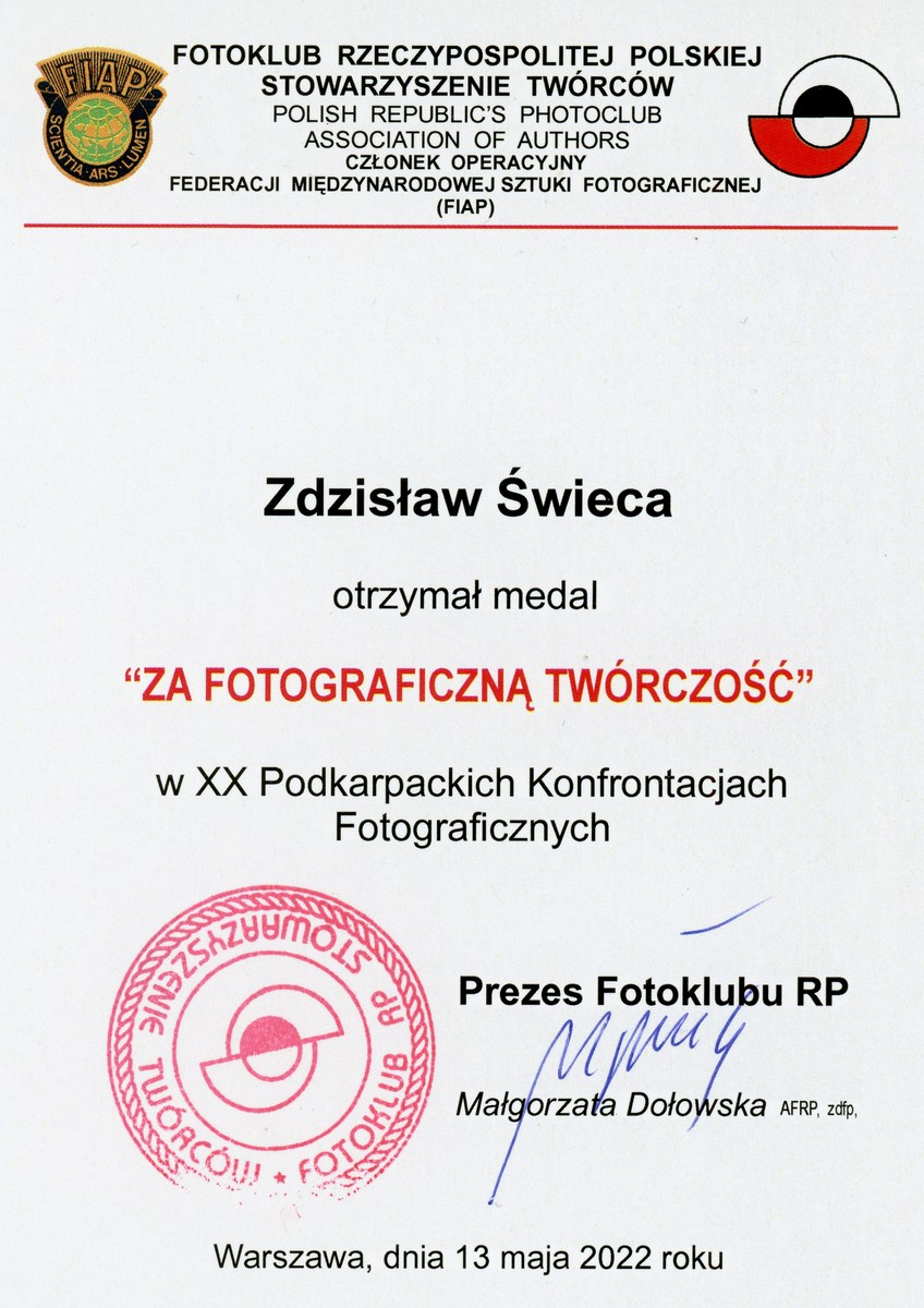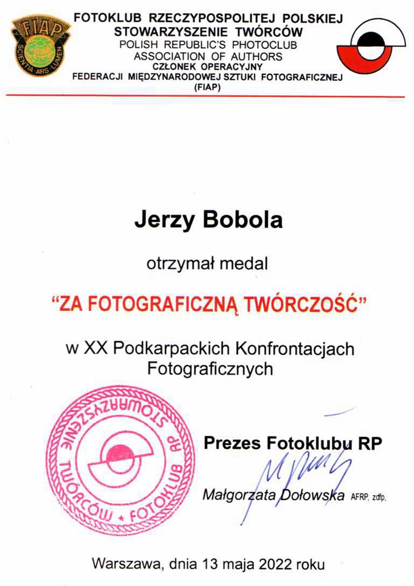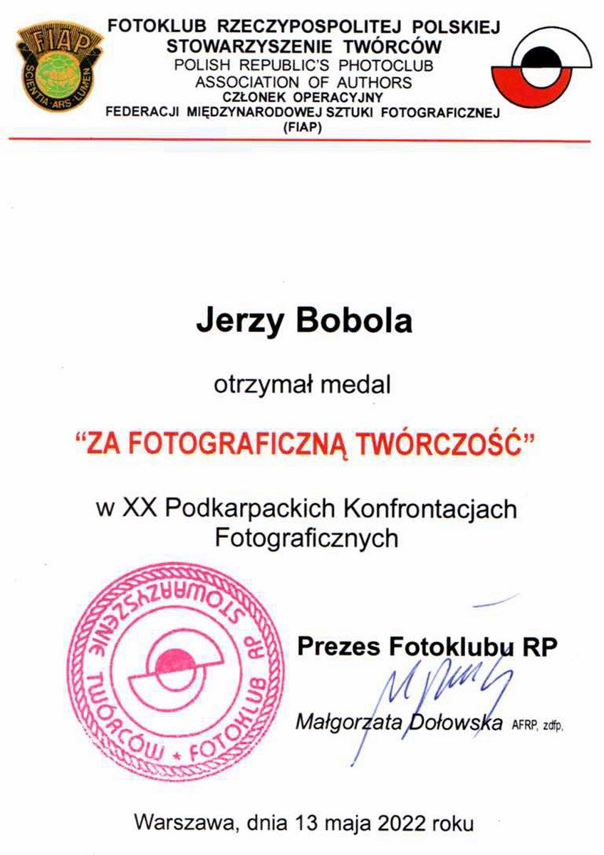 Podczas wernisażu zostało uhonorowanych srebrnymi medalami dwóch członków naszego klubu za całokształt osiągnięć w dziedzinie fotografii: kol. Jerzy Bobola i kol. Zdzisław Świeca. Gratulujemy!