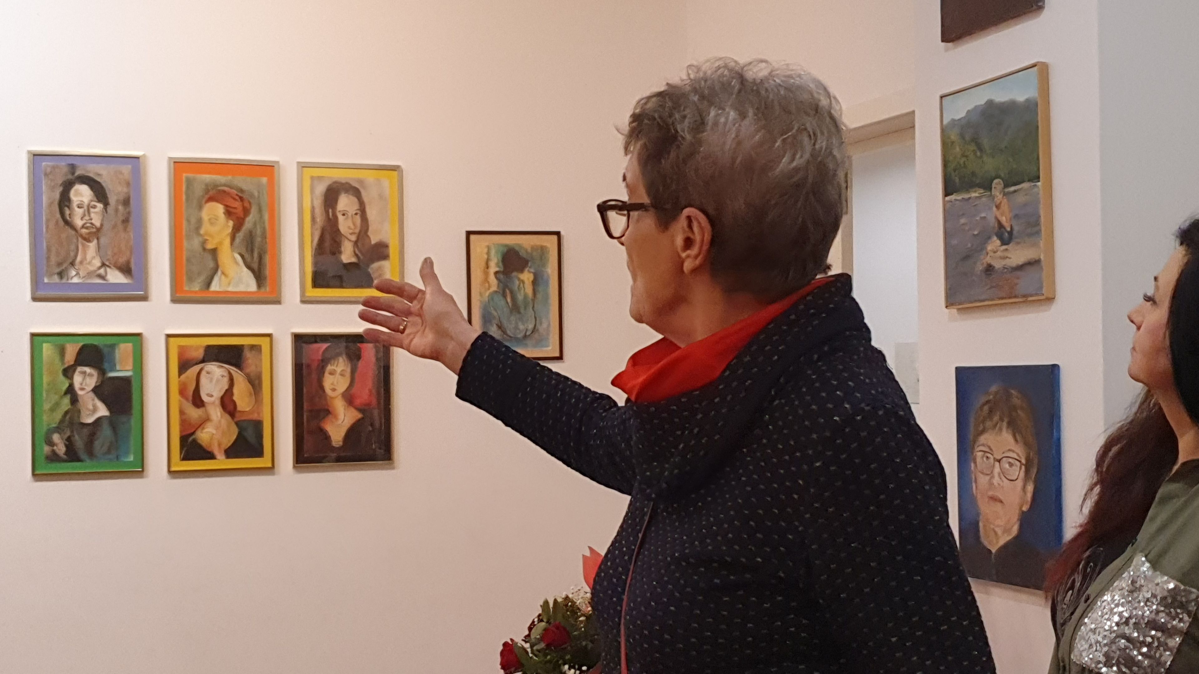 Jest to wystawa przekrojowa, obejmująca prace z początków działalności malarskiej, aż po najświeższe - z tego roku. W sumie zaprezentowano ok. 80 obrazów w różnych technikach. Są tu zarówno akryle, jak i pastele, akwarele oraz rysunki. Gratulujemy koleżance pięknych prac i życzymy dalszych poszukiwań i sukcesów artystycznych.