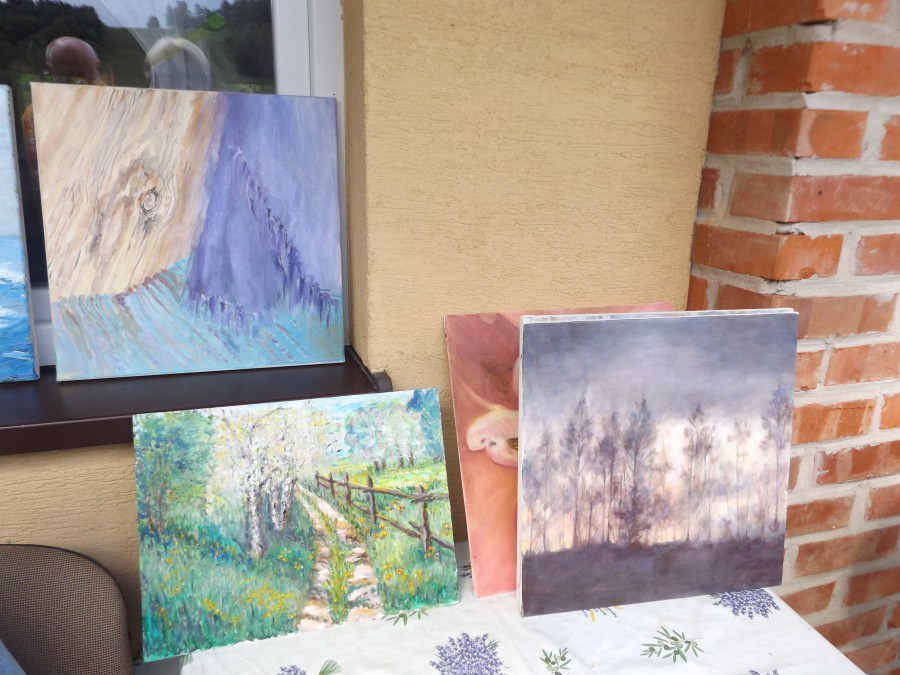 Powstało wiele prac o różnej tematyce. Plener zakończyliśmy jak zwykle wystawą i fotografowaniem naszego dorobku, w strugach deszczu.