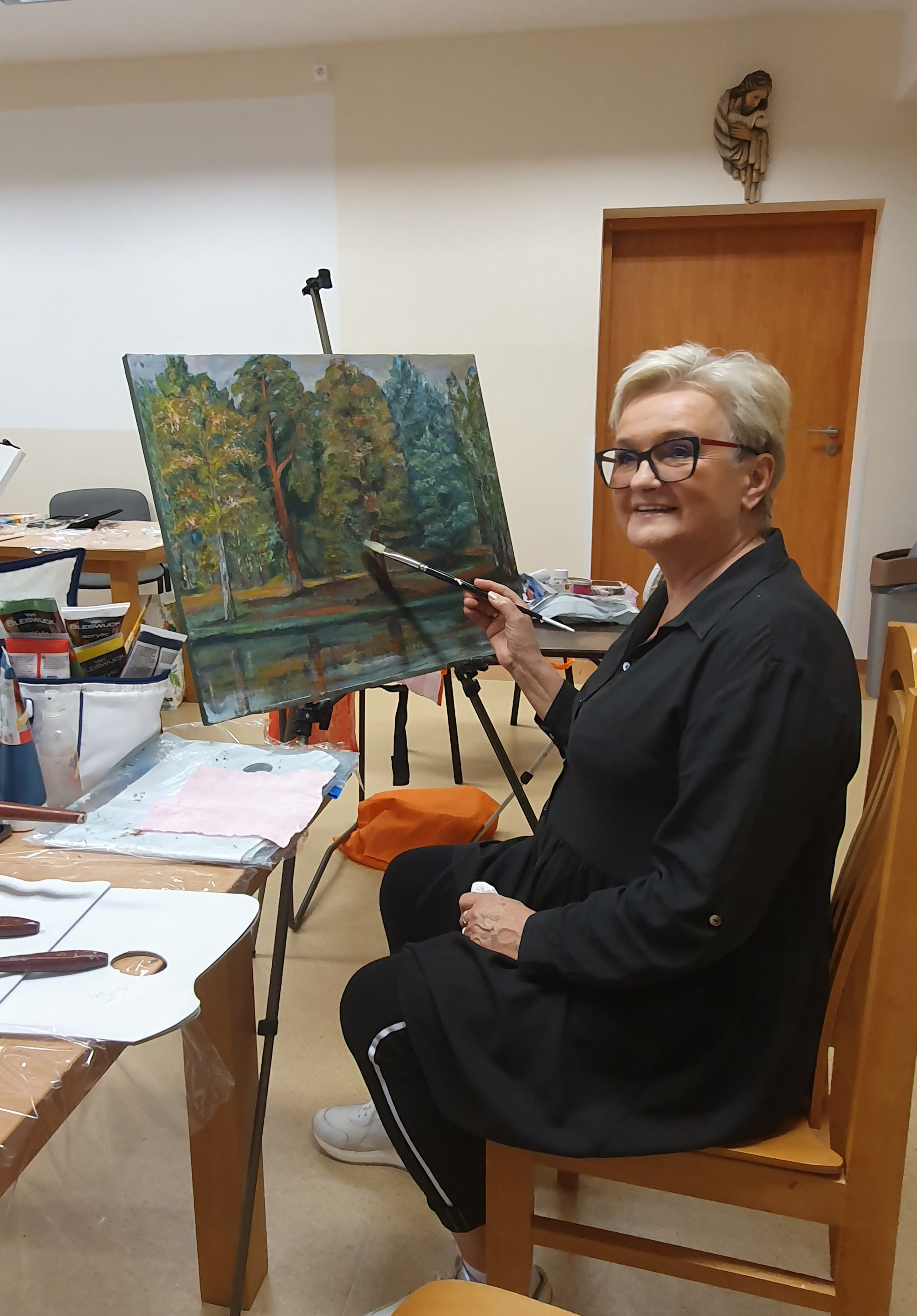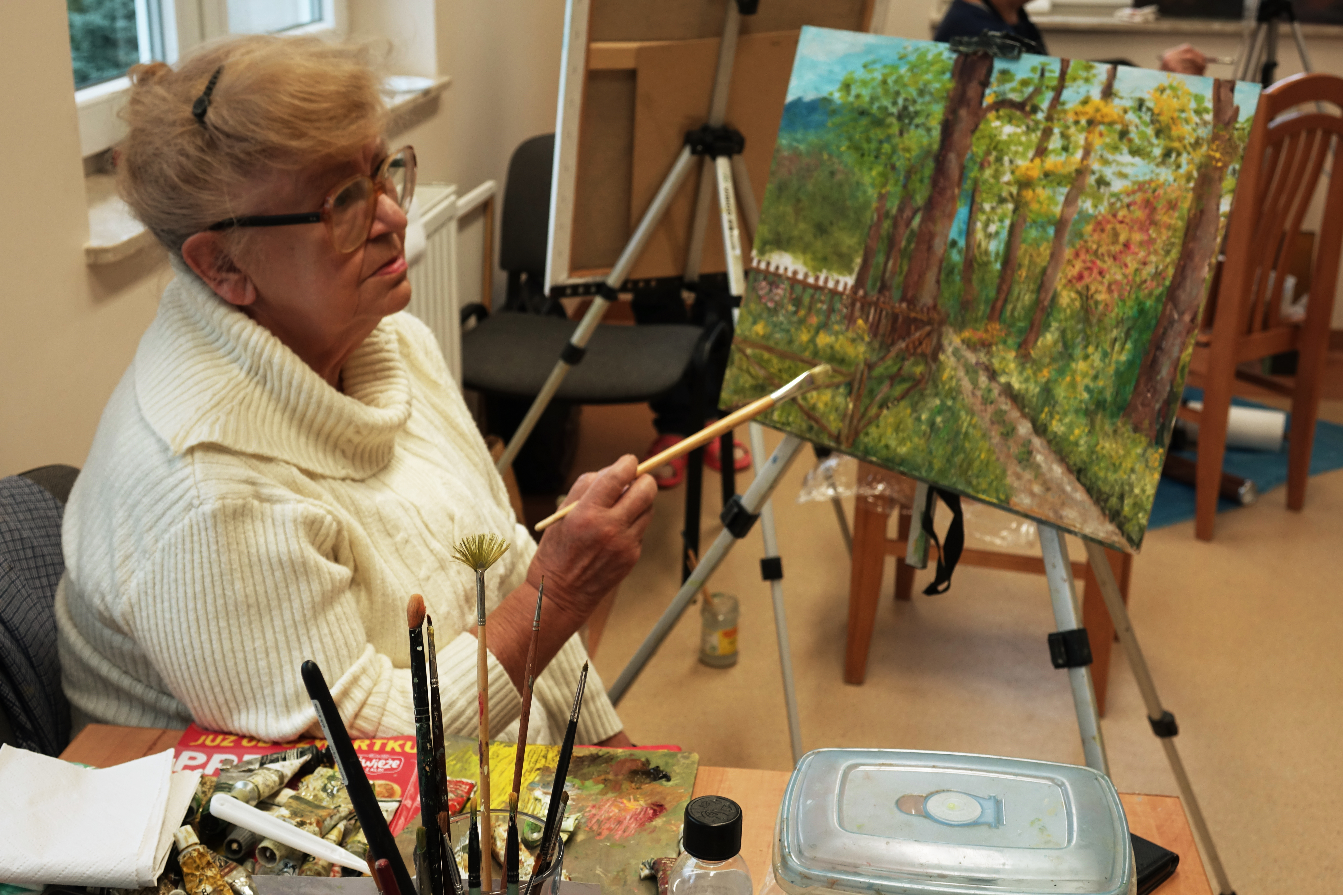 Mimo późnej jesieni, w plenerze Klubu malarstwa wzięło udział 15 osób. Listopad podarował nam, malarzom, ostatnie ciepłe dni, właśnie w ulubionych Budach Głogowskich. Spacerowaliśmy po prześwietlonych słońcem lasach, potem malowaliśmy z zapałem, a wieczorem, po kolacji śpiewaliśmy o urodzie życia w trzecim wieku...