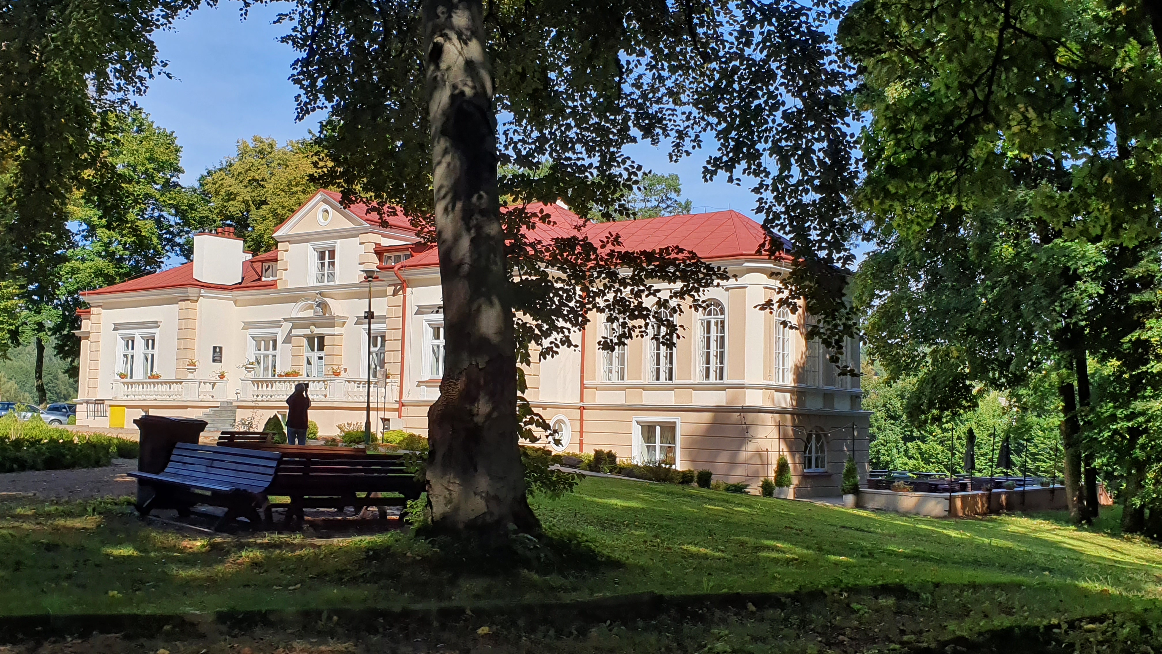 Miejscem wybranym na plener był zespół pałacowo- parkowy w Hadlach Szklarskich (XIX/XXw) składający się z pieczołowicie odrestaurowanego przez gminę dworu, wraz z towarzyszącymi obiektami dawnych stajni, kużni i oranżerii, zaadaptowanych obecnie do nowych funkcji. Mieszkaliśmy w drewnianym obiekcie dawnego dworku myśliwskiego.Całość założenia otacza 8 hektarowy park, z pięknym starodrzewem i urokliwym stawem, co stwarzało niepowtarzalną atmosferę i stanowiło dla nas źródło inspiracji. Te parę dni,spędzonych w otoczeniu natury i we wspólnym towarzystwie, były beztroskimi chwilami wytchnienia i dały nam sporo czasu i okazji do malowania, co dokumentują załączone zdjęcia.